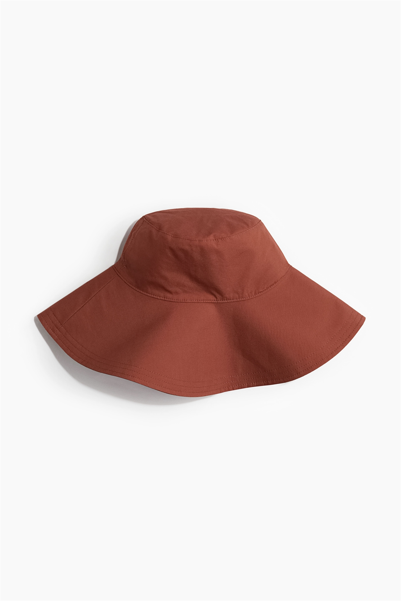 Солнцезащитная шляпа из хлопкового поплина с широким ободком. На подкладке. Ширина ободка 12 см.