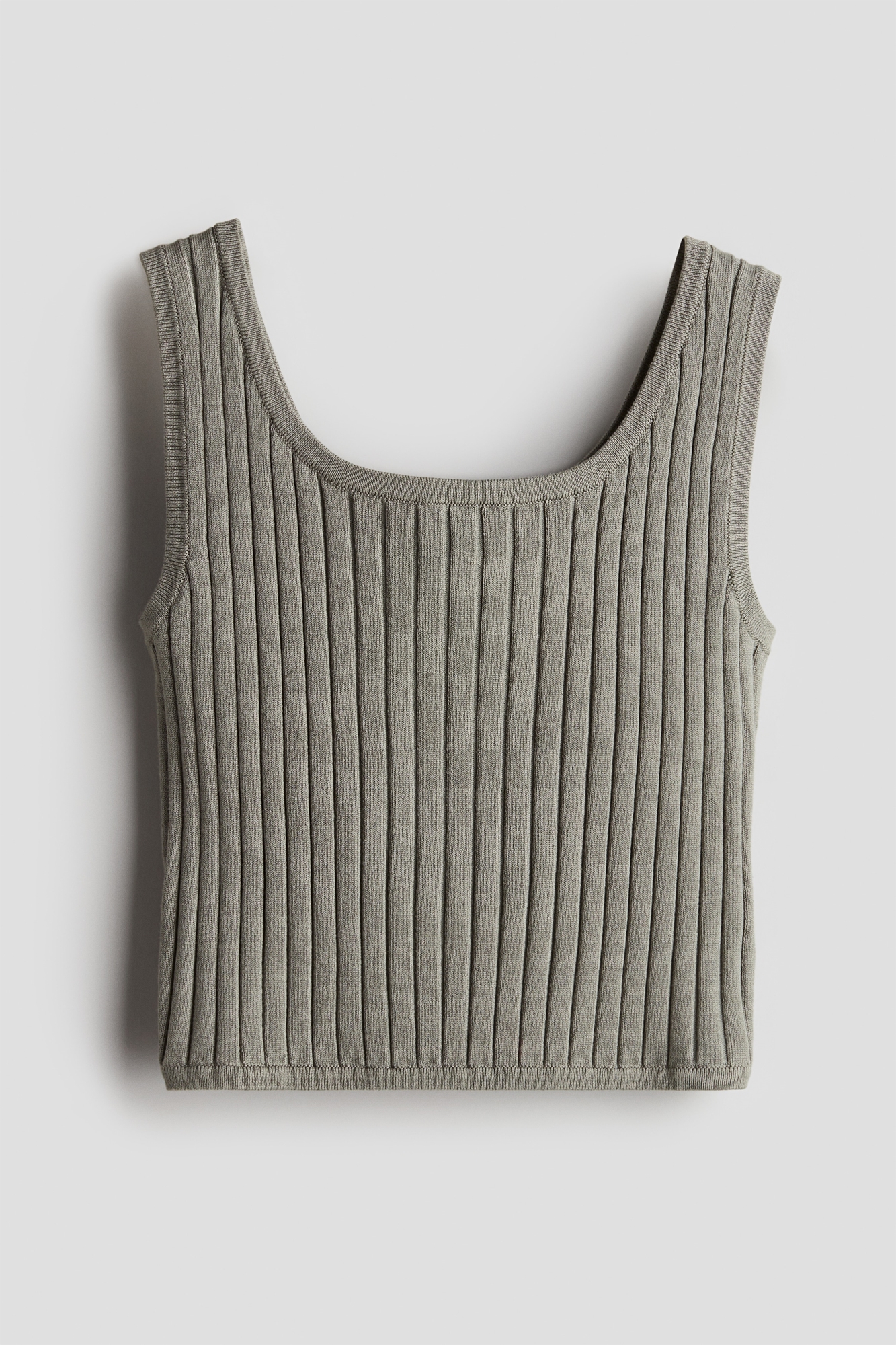 Жилет из мягкого трикотажа в рубчик с круглым вырезом и прямым подолом.
