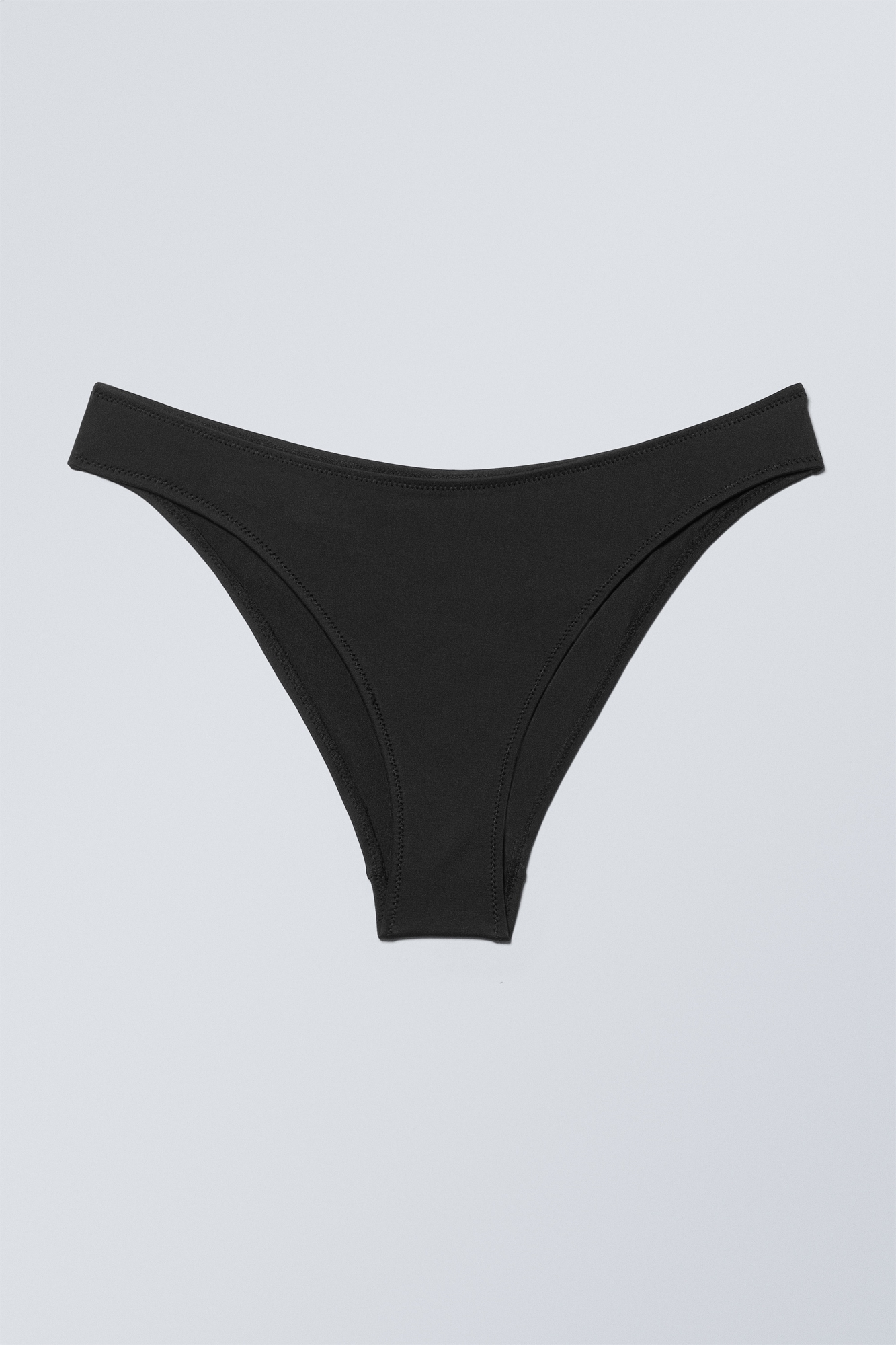 Пара трусов-бикини с минимальным покрытием из спортивной ткани из переработанного полиамида, дополненной переработанным эластаном для дополнительной растяжки. Эти дерзкие любимцы у бассейна имеют высокий разрез, слегка заниженную линию талии и полностью на подкладке.