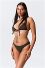 Пара трусов-бикини с минимальным покрытием из спортивной ткани из переработанного полиамида, дополненной переработанным эластаном для дополнительной растяжки. Эти дерзкие любимцы у бассейна имеют высокий разрез, слегка заниженную линию талии и полностью на подкладке.