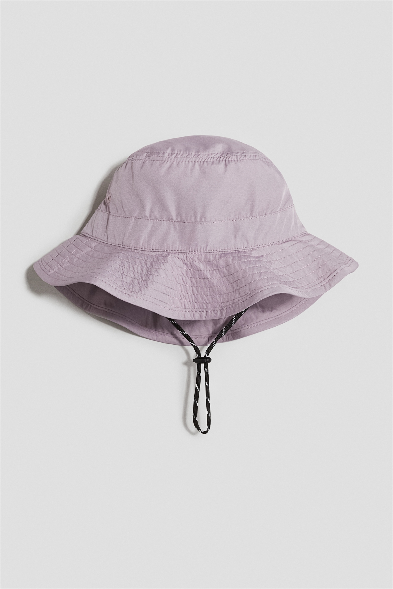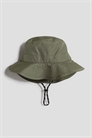 Солнцезащитная шляпа из ткани с защитой от ультрафиолета, с широким покатым околышем и регулируемым, съемным шнурком с ограничителем под подбородком. Откидной клапан для защиты задней части шеи. UPF 50.