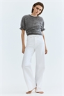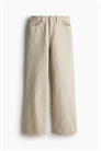 Джинсы с 5 карманами из жесткого хлопкового денима, который сначала кажется упругим, но затем смягчается и ослабевает при носке. Широкие штанины с обычной посадкой от талии до бедер и широким кроем от бедра до подола. Высокая талия с ширинкой на молнии и пуговице. Регулярная длина, рассчитанная на то, чтобы доходить до верхней части стопы с небольшим запасом или вообще без запаса.