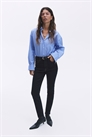 Джинсы с 5 карманами из денима повышенной растяжимости для максимального комфорта. Джинсы разработаны с уникальной способностью адаптироваться к каждой отдельной фигуре. Зауженный крой от талии до бедер и зауженные штанины от колена до подола. Завышенная талия с ширинкой на молнии и пуговице. Длина по щиколотку, зауженная к лодыжкам. Моментальная икона.