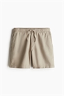 Шорты из воздушного хлопка и льна с эластичным переплетением, утягивающим поясом на талии, фальшивой ширинкой, незаметными боковыми карманами и открытым задним карманом. Расслабленный крой для непринужденного, но не чрезмерного силуэта. Смесь хлопка и льна сочетает в себе мягкость хлопка и прочность льна, создавая красивую, текстурированную ткань, которая хорошо пропускает воздух и прекрасно драпируется.