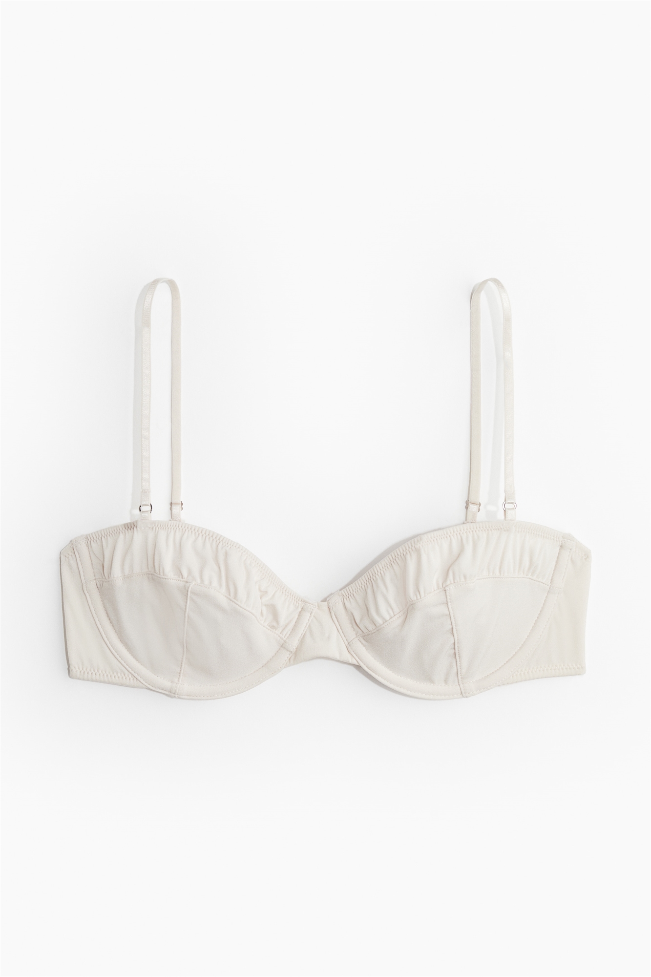 Бюстгальтер из микрофибры без подкладки с регулируемыми бретелями и чашечками с сетчатой подкладкой, которые придают бюсту естественную форму и обеспечивают легкую поддержку. Узкая застежка на крючки и глазки сзади.