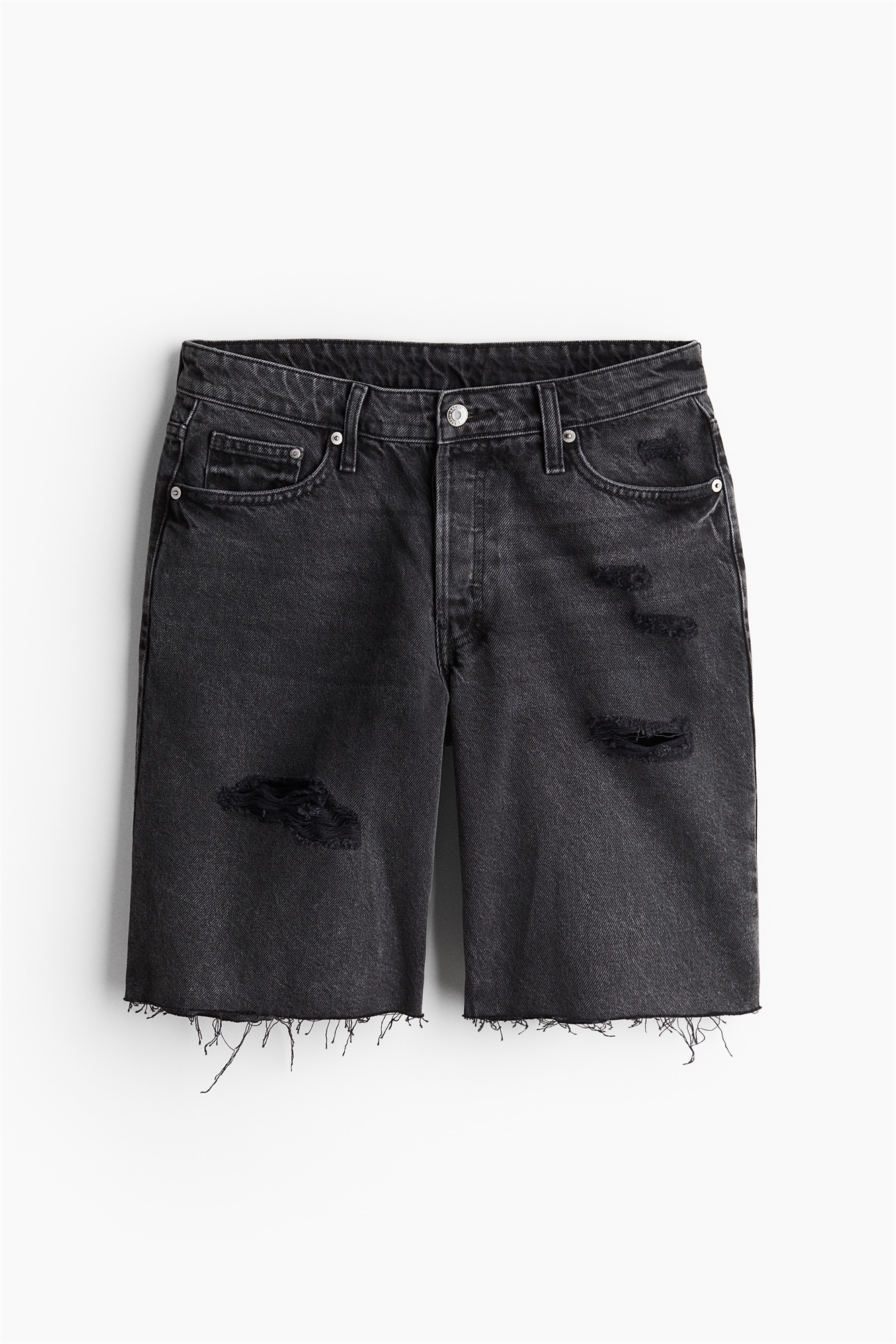 Свободные шорты с 5 карманами из жесткого хлопкового денима, который сначала кажется твердым, но затем смягчается и ослабевает при носке. Заниженная талия с ширинкой на пуговице. Необработанные края.