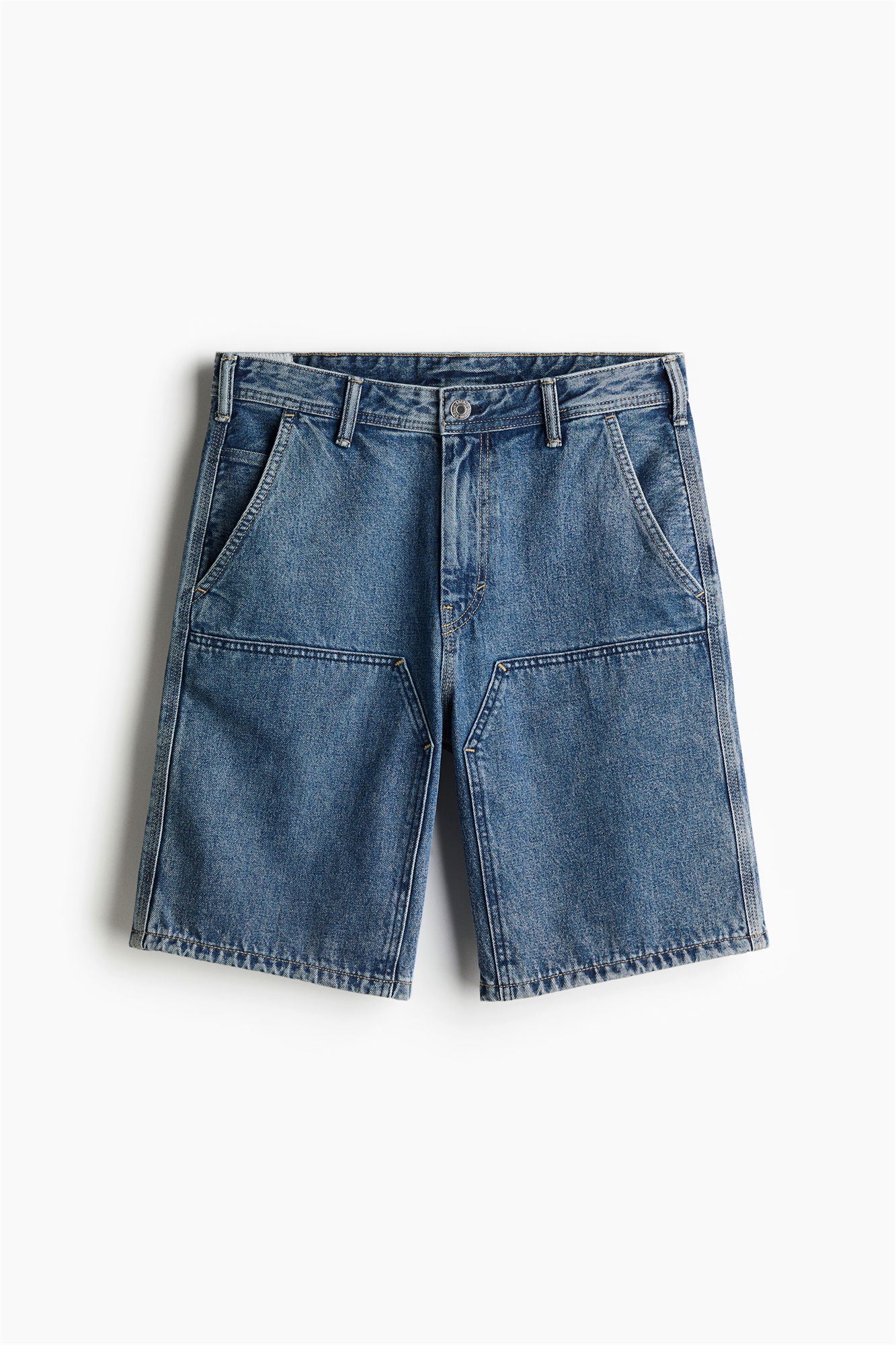 Шорты из жесткого хлопкового денима с прямыми штанинами и непринужденной посадкой от сиденья до подола с дополнительным пространством в области бедер. Боковые карманы, задние карманы и большие заплатки на коленях. Регулярная талия и ширинка на молнии.