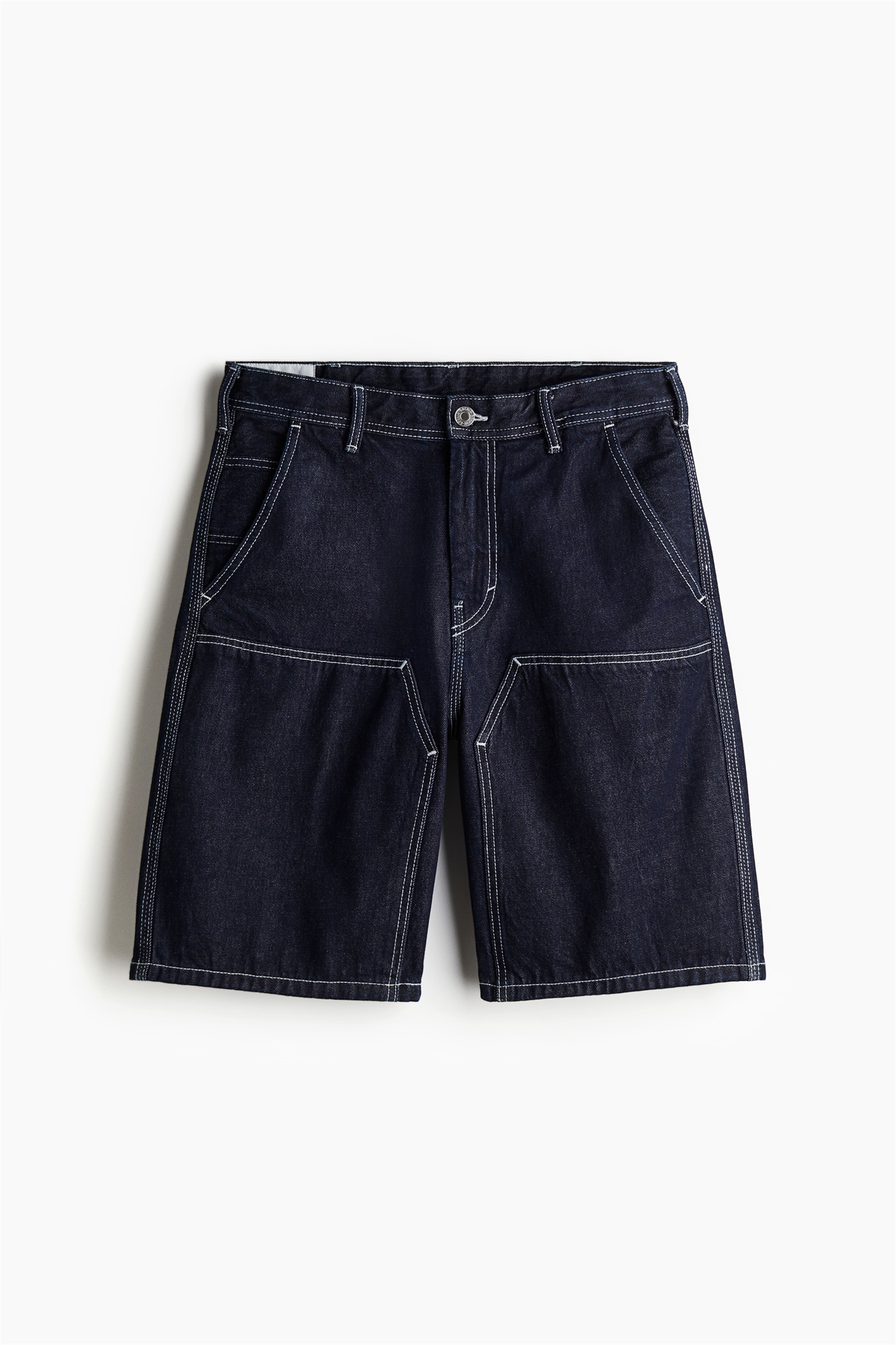 Шорты из жесткого хлопкового денима с прямыми штанинами и непринужденной посадкой от сиденья до подола с дополнительным пространством в области бедер. Боковые карманы, задние карманы и большие заплатки на коленях. Регулярная талия и ширинка на молнии.