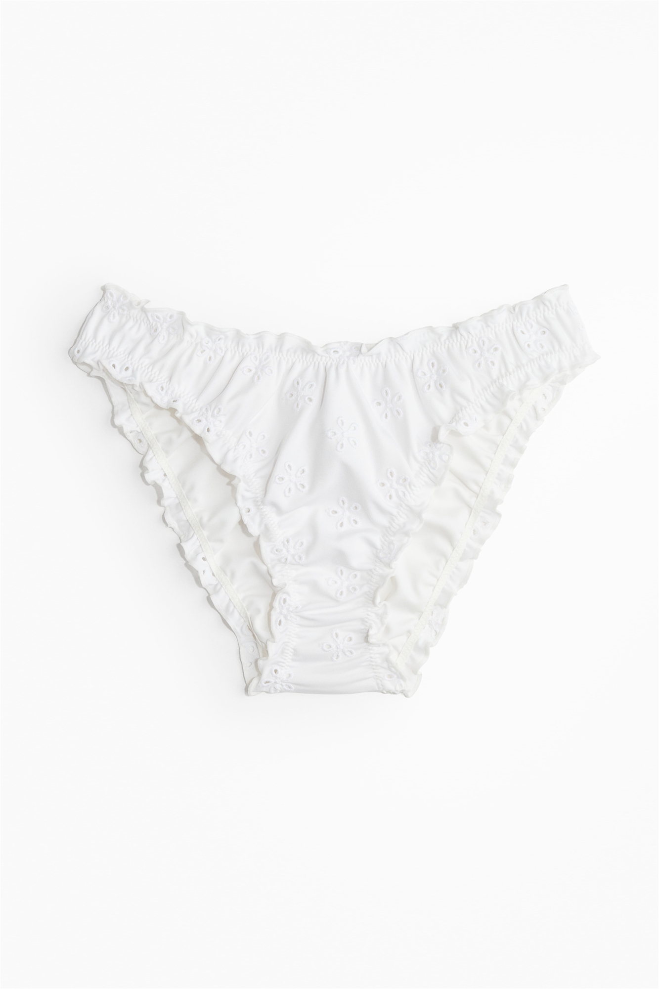 Полностью закрытые трусы-бикини со средней, V-образной талией и вырезом сзади. Края обработаны оверлоком.