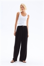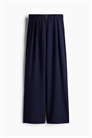 Приталенные брюки из трикотажного крепа с высокой эластичной талией, складками спереди и декоративным поясом с металлической пряжкой. Прямые, широкие ноги.
