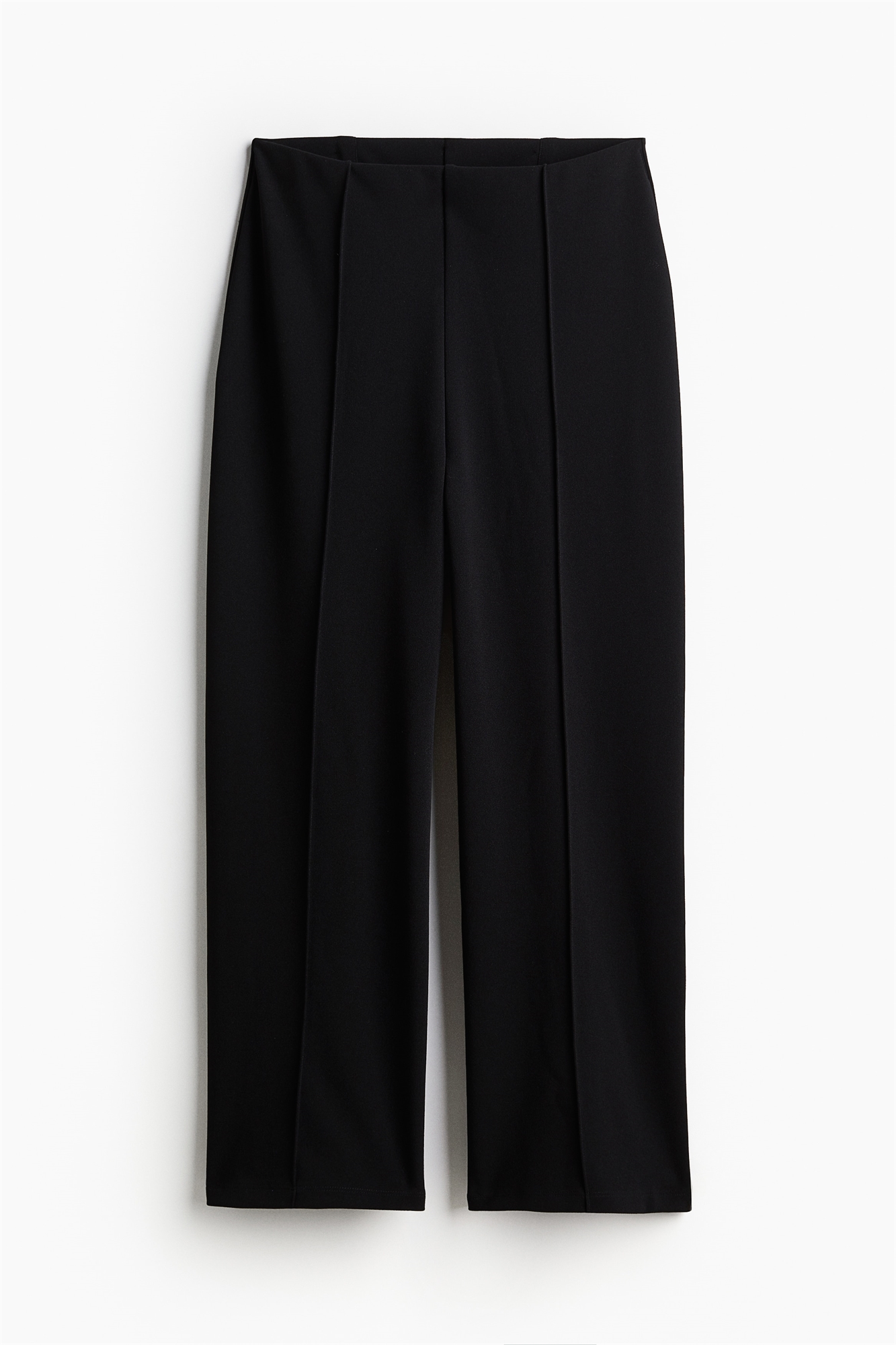 Приталенные кюлоты длиной 3/4 из крепового джерси с высокой эластичной талией и прямыми ногами с застроченными складками спереди.