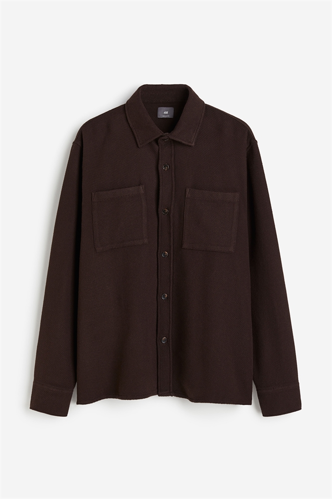 Рубашка из вафельного хлопкового полотна с отложным воротником, классическим передом, открытыми нагрудными карманами, длинными рукавами с манжетами на пуговицах и прямым покроем. Регулярный крой для комфортной носки и классического силуэта.