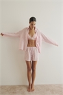 Пижама с рубашкой и шортами из мягкого хлопкового муслина. Рубашка с длинными рукавами, воротником, пуговицами спереди и накладным нагрудным карманом. Шорты с эластичным утягивающим поясом.