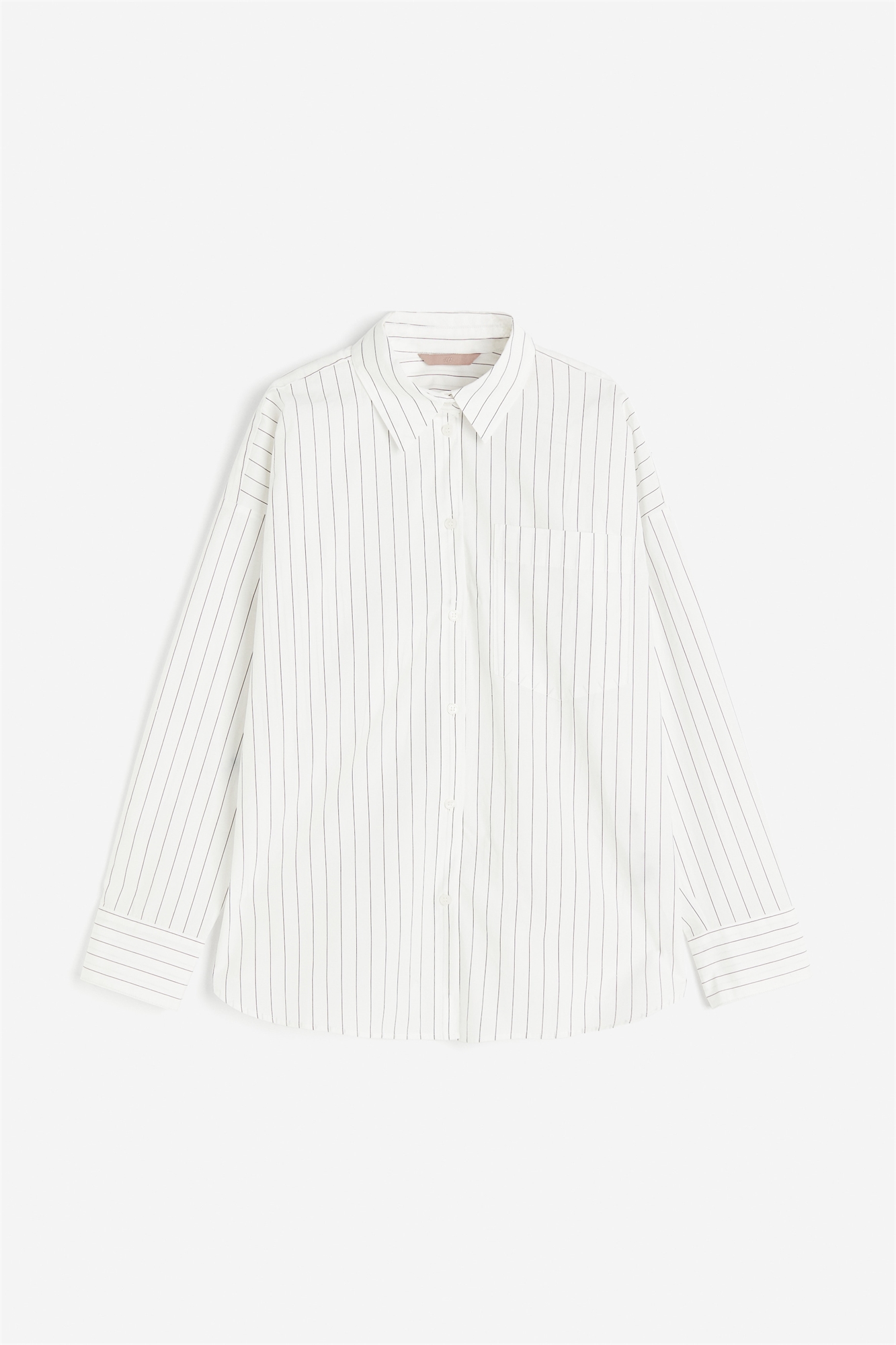 Рубашка свободного покроя из воздушного хлопкового полотна с воротником и пуговицами спереди. Сзади - складка, открытый нагрудный карман, спущенные плечи и длинные рукава с манжетами на пуговицах. Аккуратный подол.