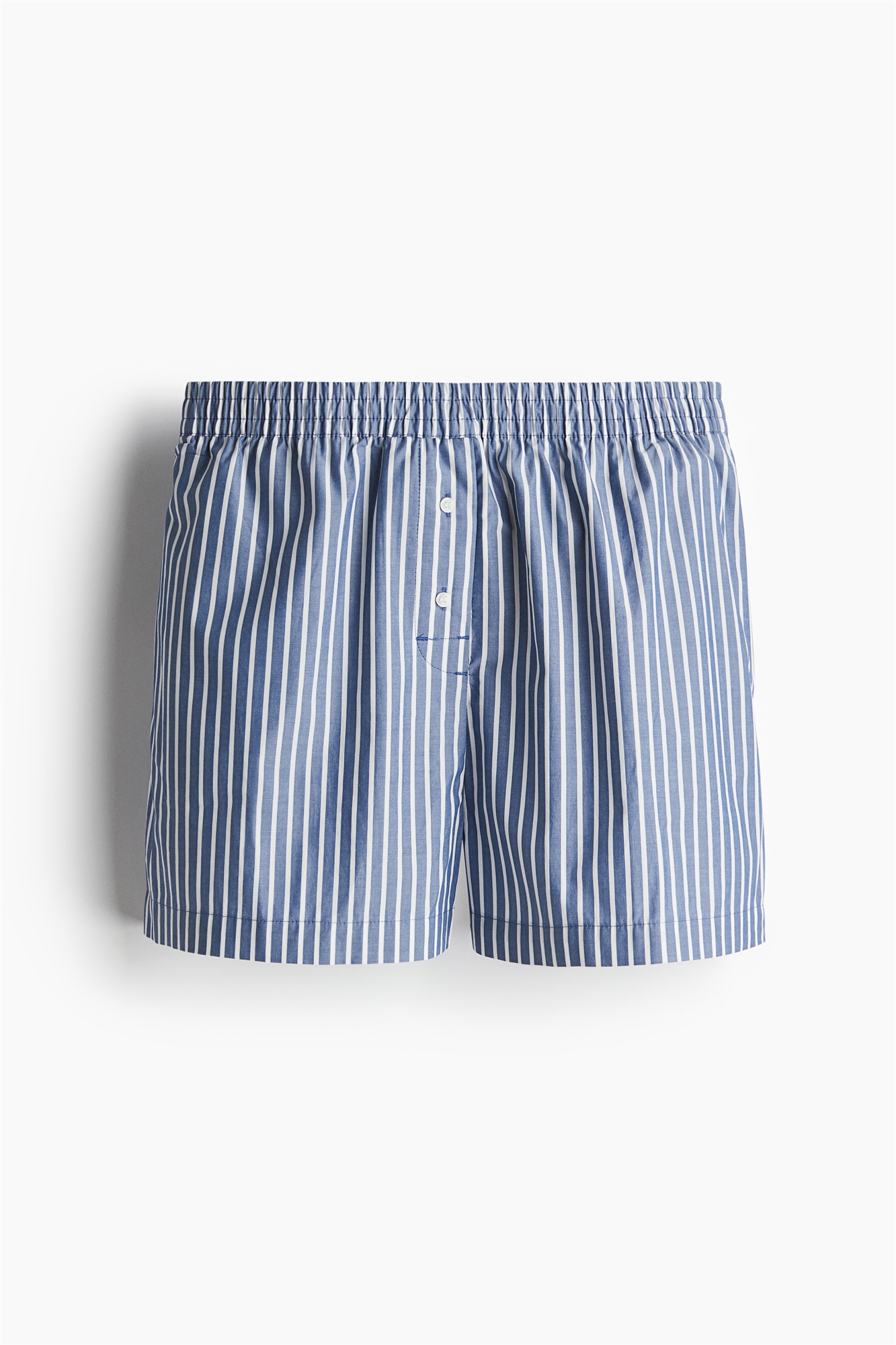 Шорты в стиле трусов боксеров свободного кроя из воздушного хлопкового полотна с эластичной вставкой на талии, карманами в боковых швах и фальшивой ширинкой с декоративными пуговицами.