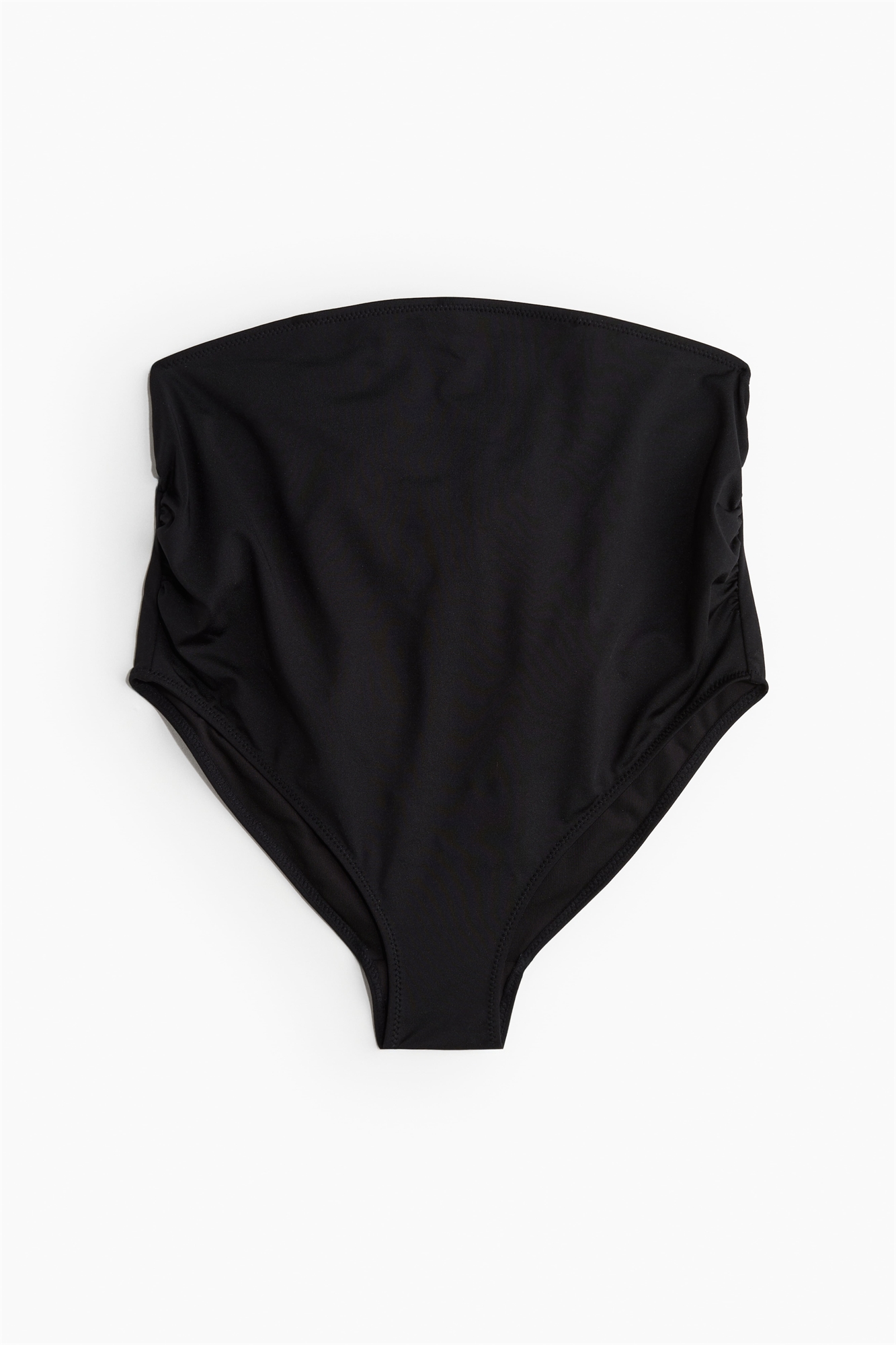 Трусы-бикини на подкладке с высокой талией и сборками по бокам для лучшей посадки на животе. Средняя посадка сзади.