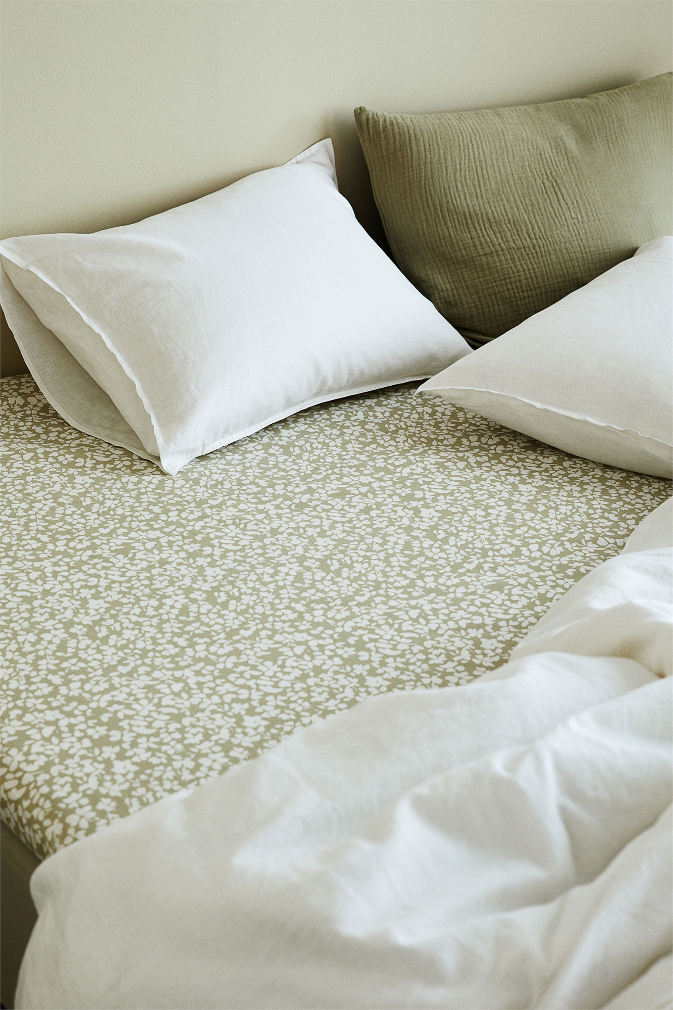 Простыня на резинке из хлопка с рисунком. Подходит для матрасов глубиной до 23 см.