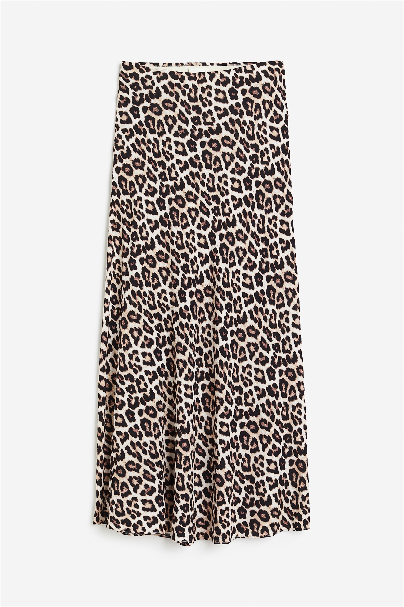 Юбка длиной до колен из вискозного крепа с высокой талией, скрытой эластичной резинкой и мягкими складками по подолу.