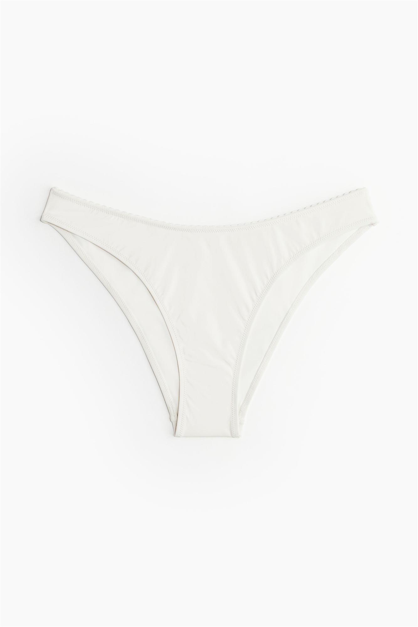 Полностью закрытые трусы-бикини со средней талией, отделанной пикотами, и вырезом сзади.