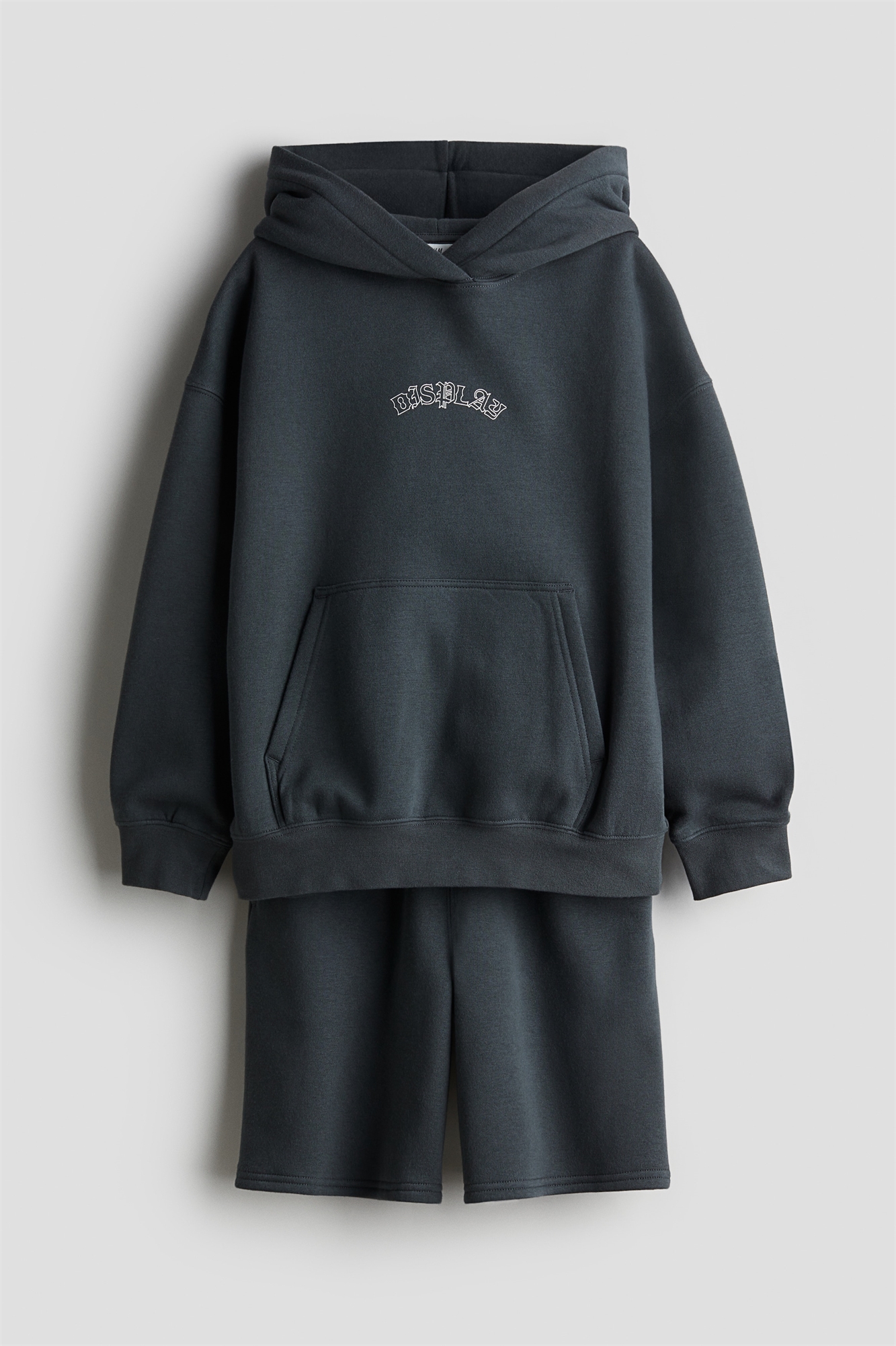 Удобный комплект из толстовки и шорт из принтованной ткани с мягким начесом внутри. Верхняя часть с двухслойным капюшоном, спущенными плечами, длинными рукавами и карманом-кенгуру. Ребристые манжеты и подол. Шорты с эластичной утягивающейся талией, неброскими боковыми карманами и накладным задним карманом.