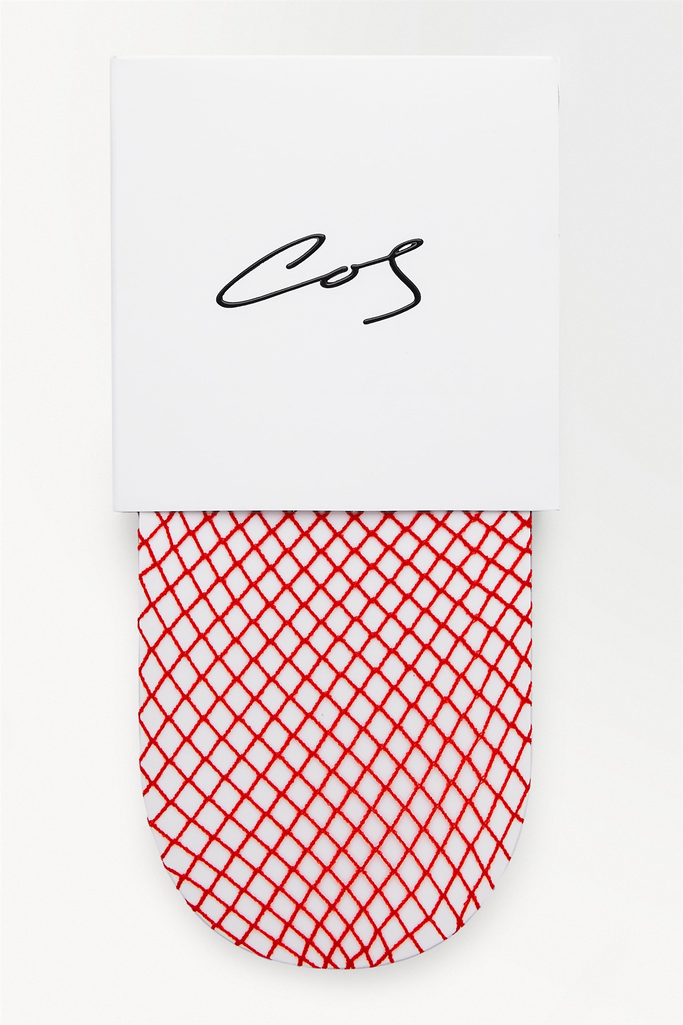 Эта модель является частью капсулы COS ATELIER, в которой специализированные ремесла и инновационные технологии сочетаются в изысканной коллекции. Крой Эти современные колготки в сеточку с геометрическим ромбовидным узором и эластичным поясом обеспечивают комфорт. ТКАНЬ Мы разработали ткань с идеальной степенью растяжимости - ровно настолько, чтобы она держала форму и обеспечивала долговечность волокон. КРАФТ Яркий малиновый оттенок был точно подобран к готовым вещам коллекции. Мыски обработаны вручную. Материал: 86% полиамид, 14% эластан. Без учета отделки / Машинная стирка