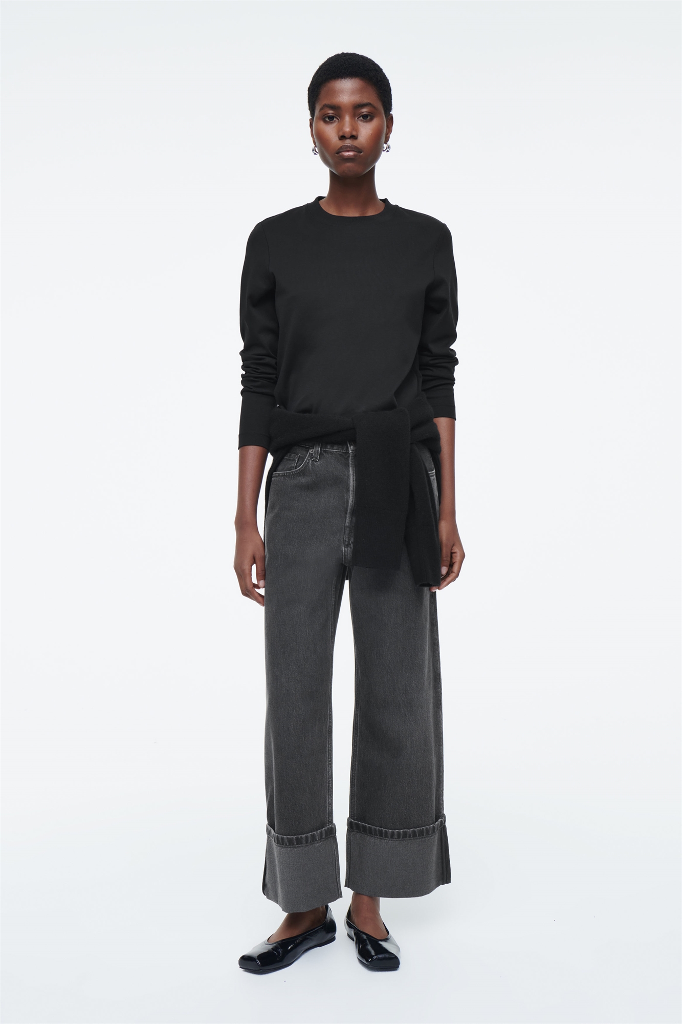Джинсы Facade с заниженной талией напоминают модели 2000-х годов. Они изготовлены из органического и переработанного хлопкового денима и выполнены в вымытом черном цвете, который можно сочетать с различными вариантами. Модель прямого кроя имеет длину по щиколотку, широкие подвороты и слегка выцветший вид для придания индивидуальности. Прямой покрой, длина по щиколотку, свободный крой, низкий пояс Застежка на пуговицы, пять карманов Органический хлопок выращен из семян без ГМО, без использования химических удобрений и пестицидов Верхний материал: 80% органический хлопок, 20% переработанный хлопок. Детали исключены/Машинная стирка Внутренняя длина ноги в размере 27 = 65 см/Модель носит размер 27