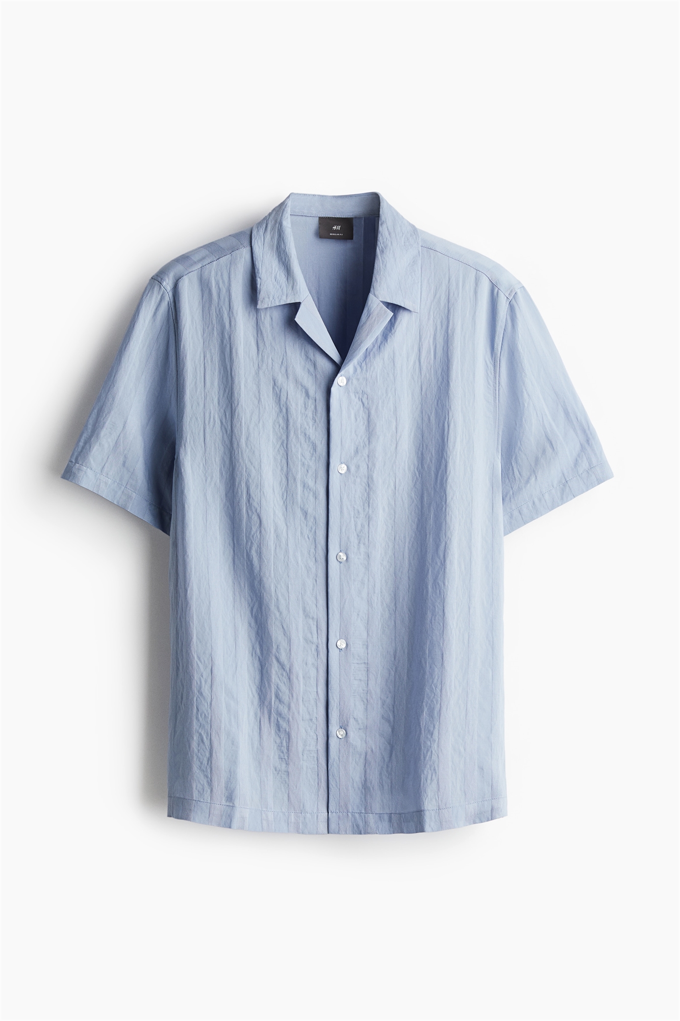 Рубашка с короткими рукавами из фактурного плетения из вискозной смеси с курортным воротником, французским передом и прямым подолом с разрезом с каждой стороны. Регулярный крой для комфортной носки и классического силуэта.