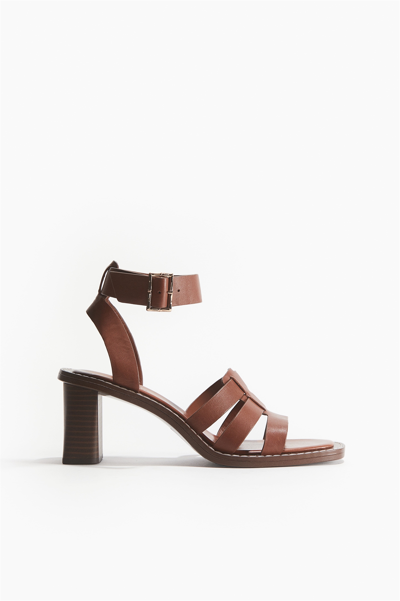 Кожаные сандалии на каблуке