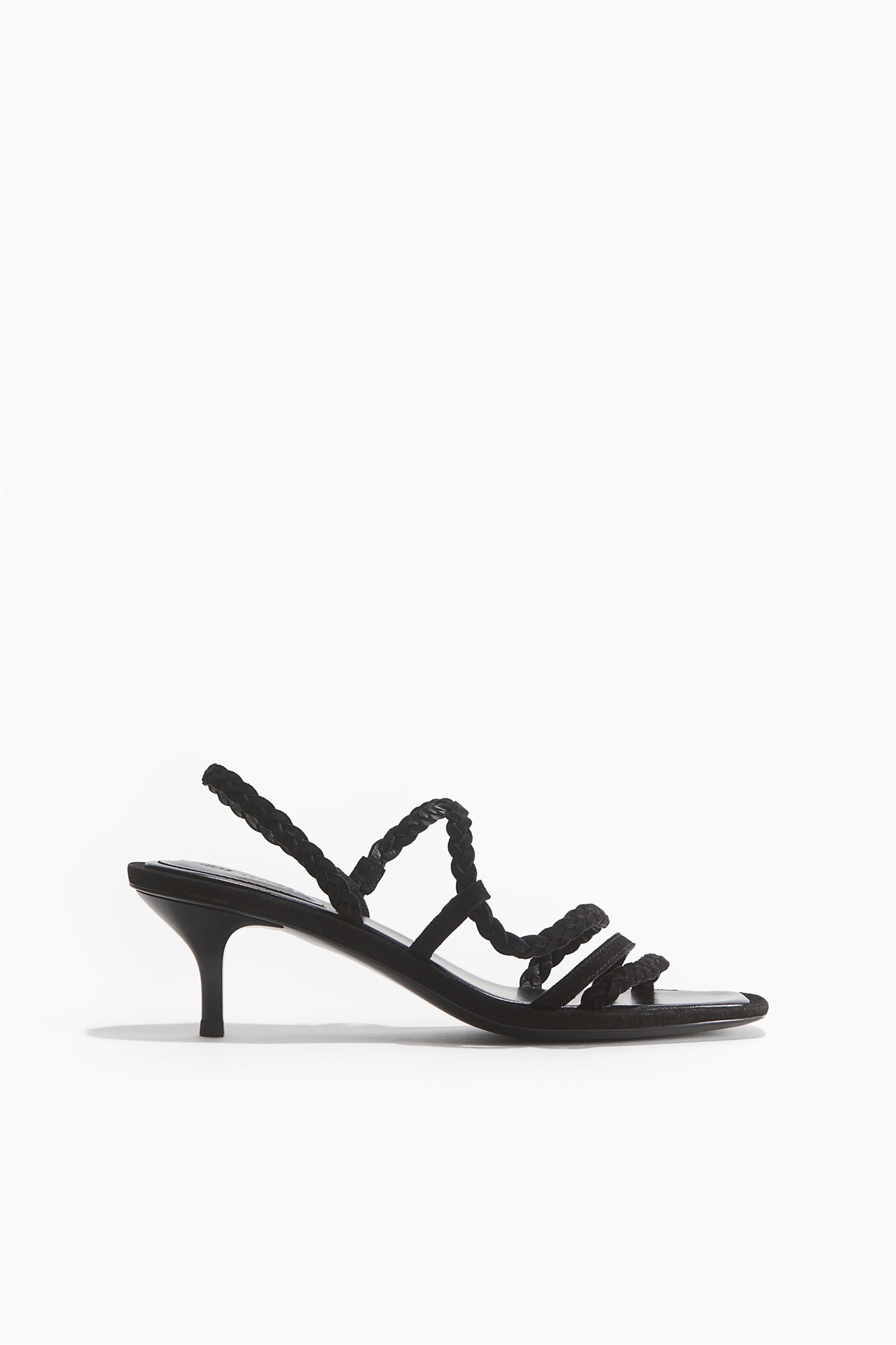 Сандалии на каблуке из мягкой замши с плетеными ремешками, квадратным носком и узким ремешком на щиколотке с эластичной вставкой с одной стороны. Кожаная стелька.