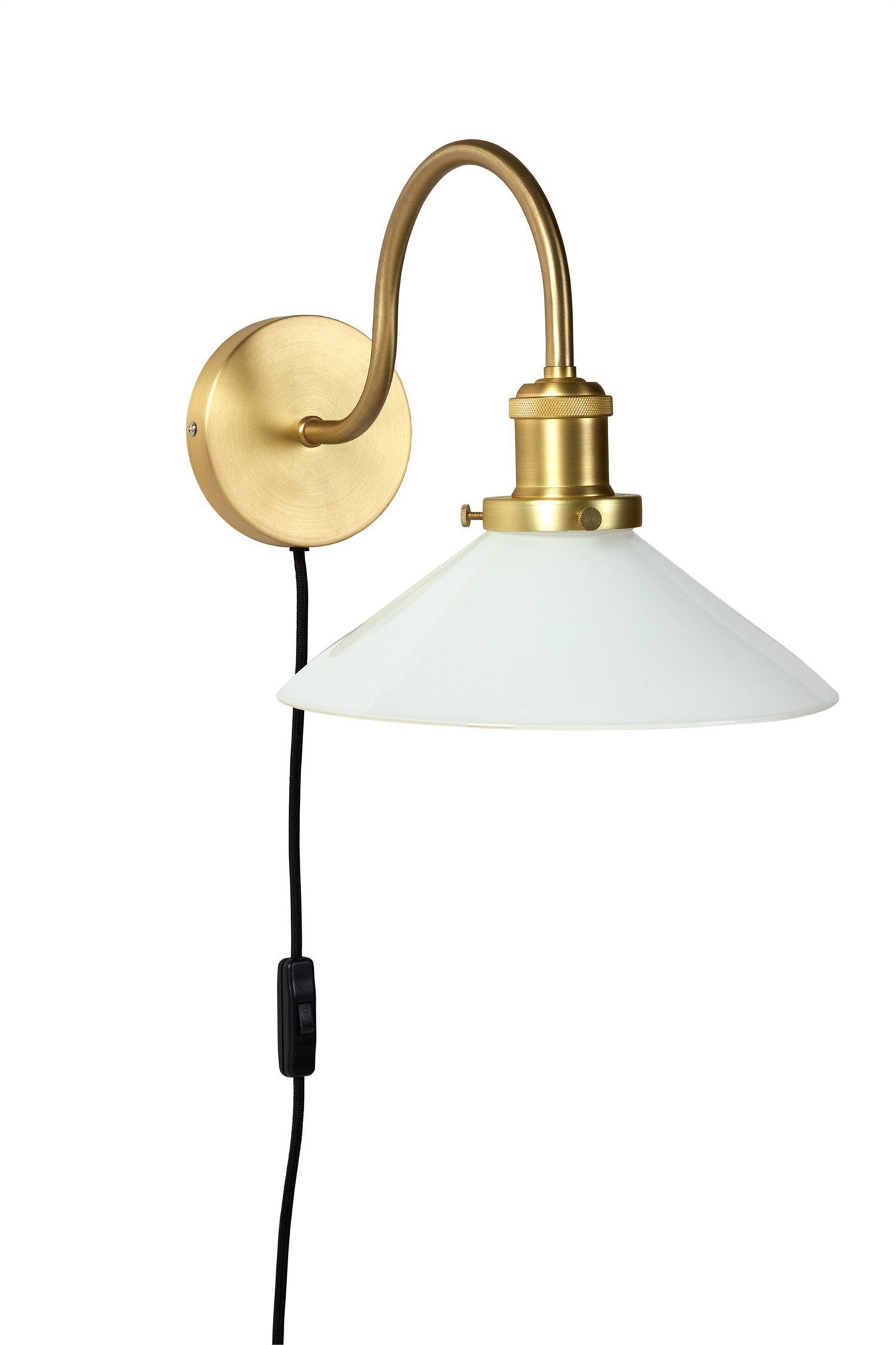 Настенный светильник Axel с металлическим каркасом и стеклянным абажуром. Классический круглый каркас с латунной отделкой. Стеклянный абажур опалового цвета создает фантастический свет и привлекает внимание. Светильник поставляется с двухметровым текстильным кабелем с выключателем и вилкой ЕС. Лампа крепится на стену с помощью кронштейна, который прикреплен к круглому основанию. Стеклянный абажур крепится к металлическому каркасу тремя винтами, создавая красивую деталь и подчеркивая классический характер. Цоколь E27, максимальная мощность 25 Вт. Высота 25 см, ширина 15 см, глубина 35 см. Диаметр настенного основания - 12 см, глубина - 2,5 см. Диаметр стеклянного абажура 25 см, высота 8 см. Лампочка в комплект не входит.