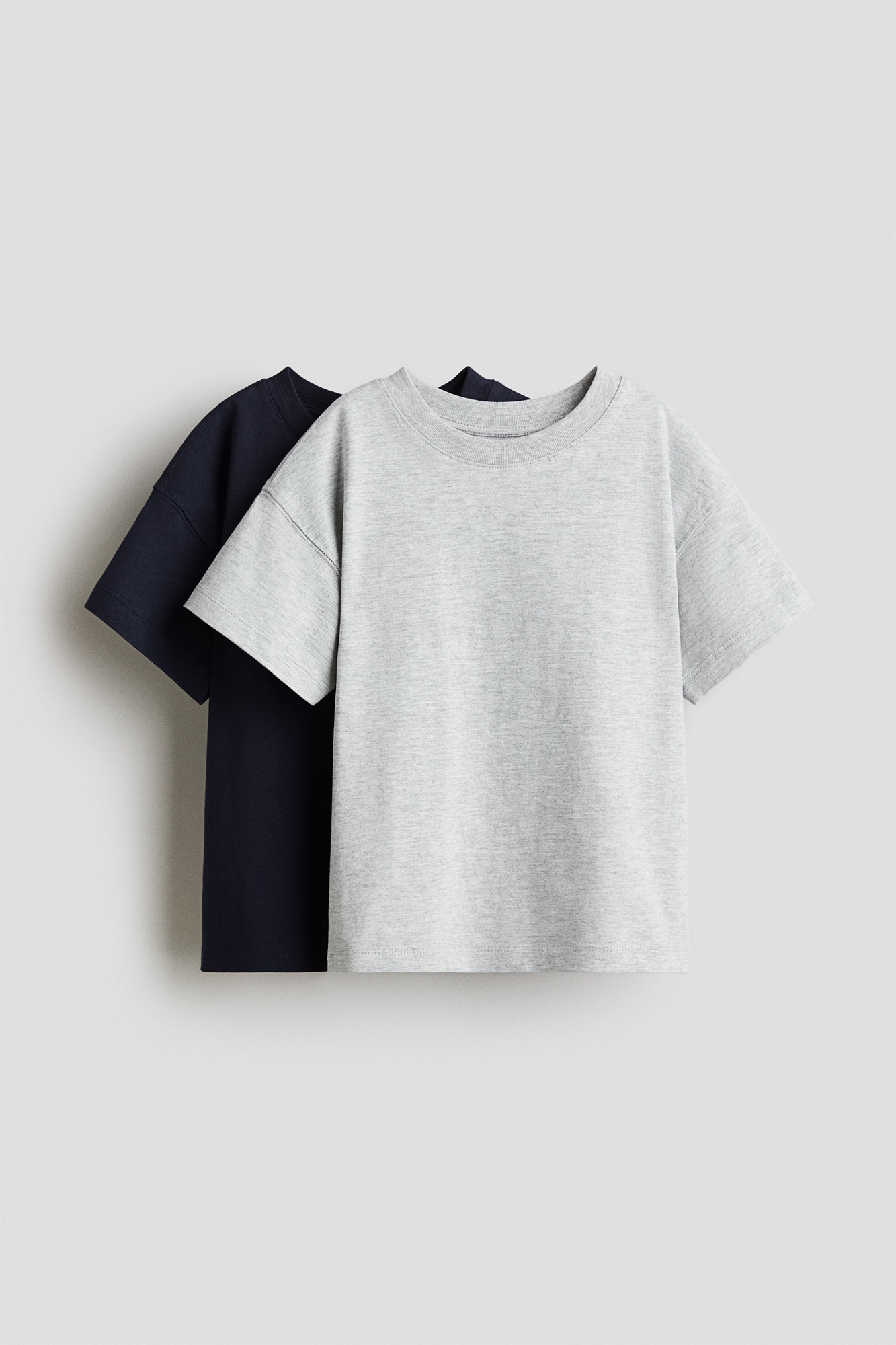 Футболки оверсайз из мягкого хлопкового джерси с круглым вырезом в рубчик, спущенными плечами и прямым покроем.