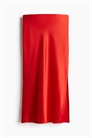 Длинная юбка-слип из крепового атласа с заниженной талией, скрытой эластичной резинкой и потайной застежкой на молнию и пуговицу с одной стороны. Подол прямого покроя с разрезом с одной стороны. Без подкладки.