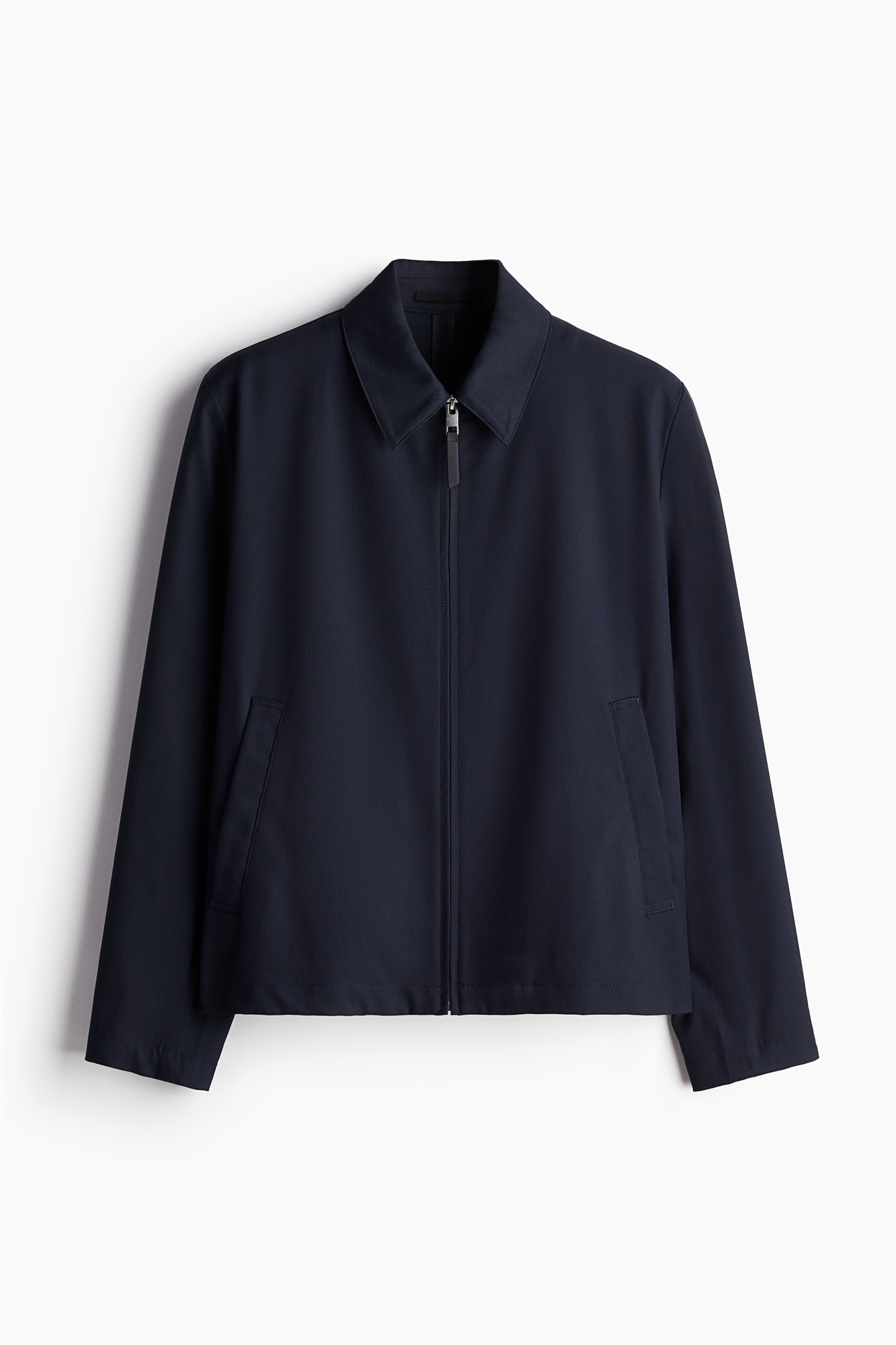 Куртка из саржи с воротником, застежкой на молнию спереди, длинными рукавами и манжетами с кнопкой. Диагональные прорезные карманы по бокам. На подкладке.