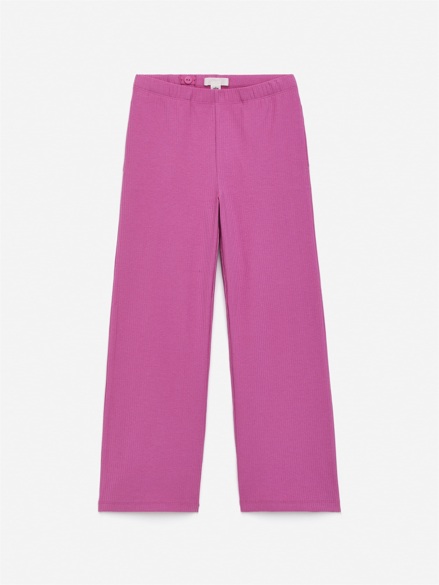 Широкие брюки с ребристой вязкой из эластичного хлопка. С регулируемыми резинками на талии.