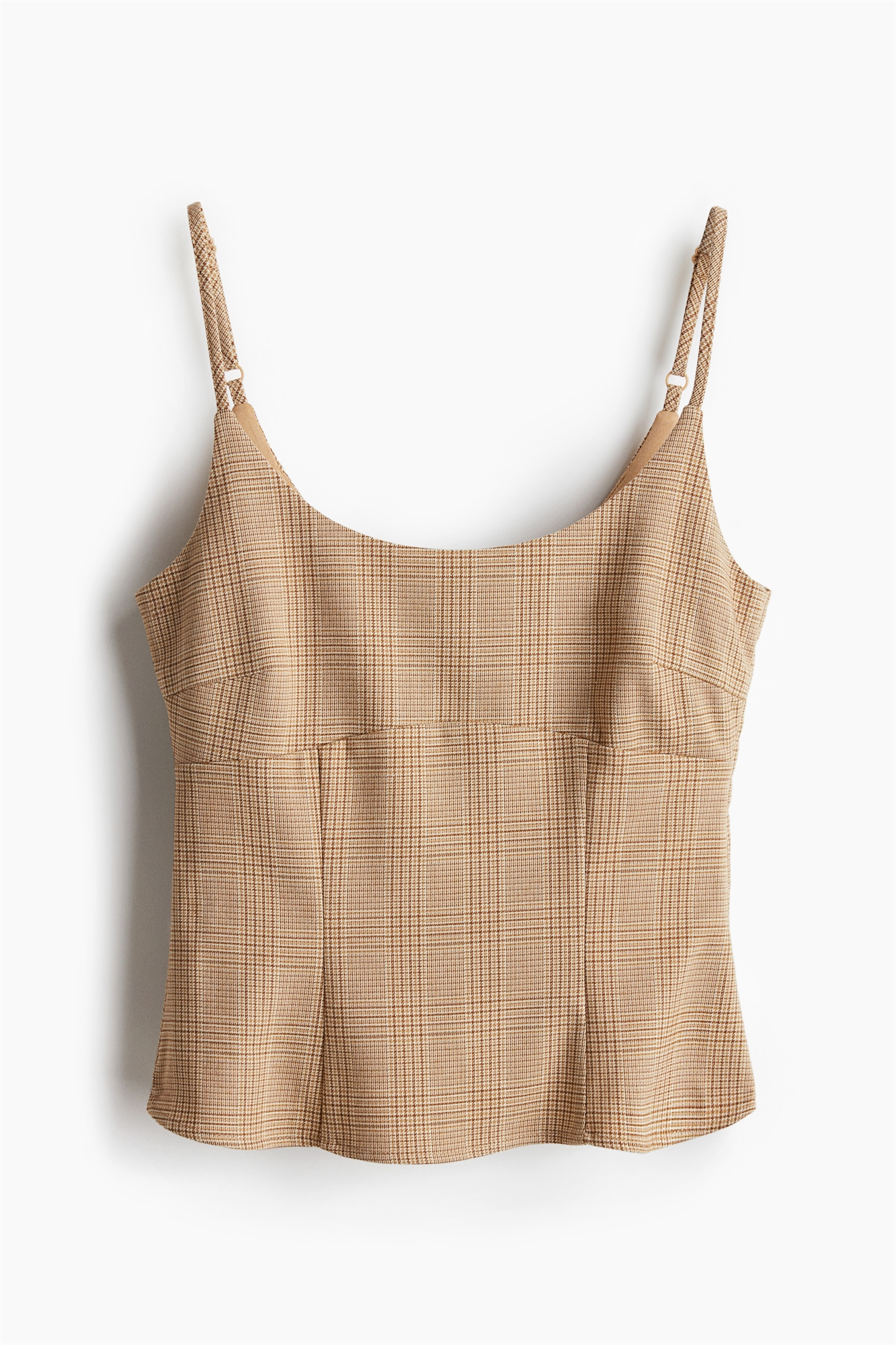 Облегающий топ из саржи с глубоким круглым вырезом, узкими регулируемыми бретелями и потайной застежкой-молнией с одной стороны. Корсетные швы под бюстом, спереди и сзади на талии. Подкладка в верхней части.