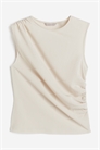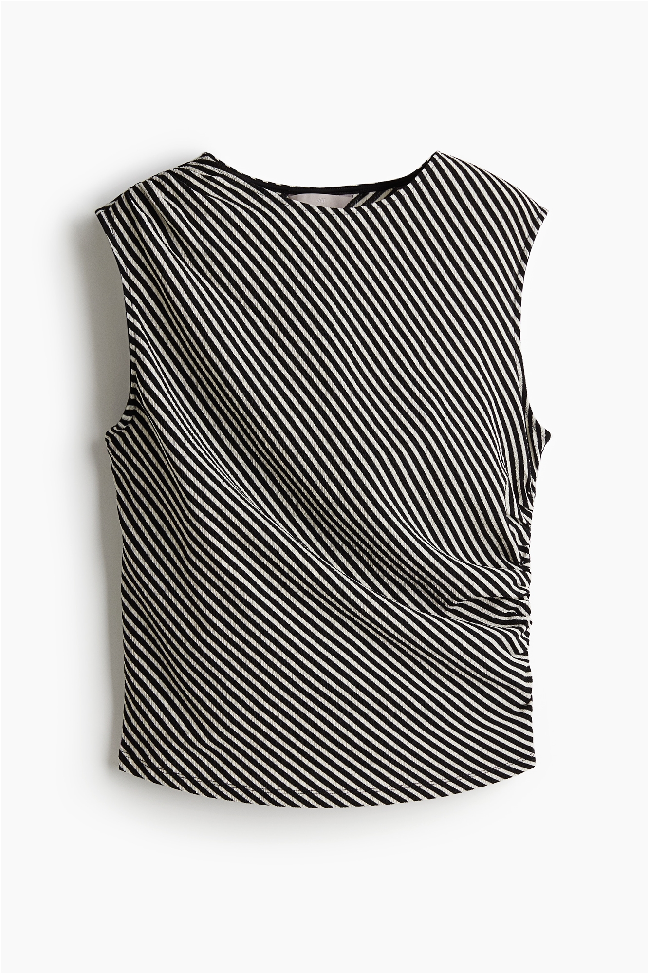 Приталенный жилет-топ из фактурного джерси с круглым вырезом и сборками на одном плече и по бокам для придания силуэту мягкой драпировки.