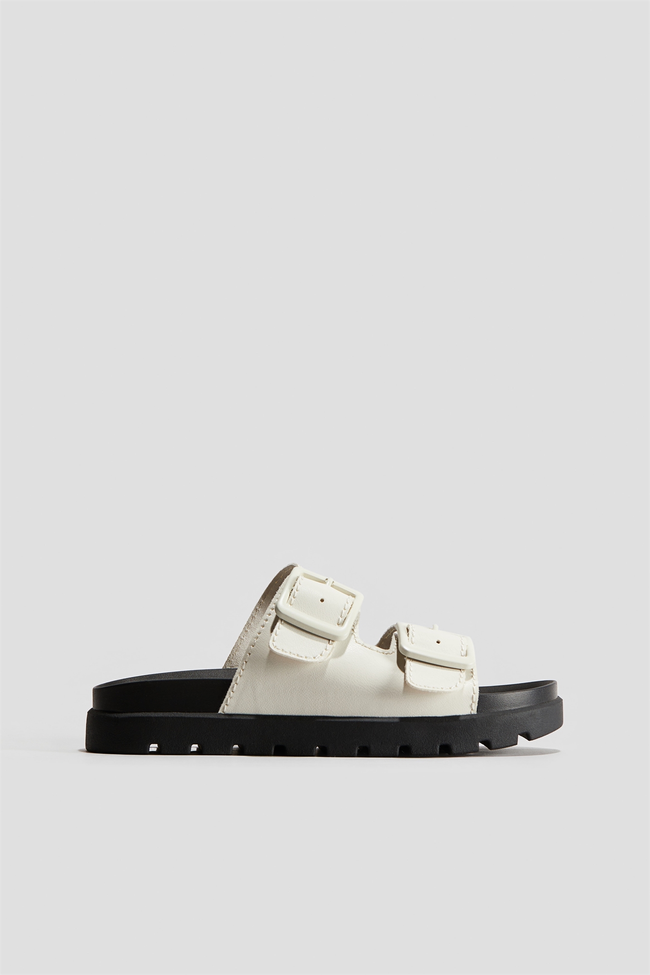 Сандалии с двумя регулируемыми ремешками с металлической пряжкой. Формованная стелька и узорчатая подошва. Высота подошвы 4 см.