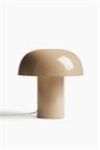 Современная настольная лампа из металла в мягкой форме, напоминающей гриб. Шнур в тканевой оболочке с пластиковым выключателем. Патрон для лампы G9. Максимальная мощность 4 Вт. Лампочка в комплект не входит. Общая высота 18 см. Диаметр абажура 22 см. Длина шнура 160 см.
