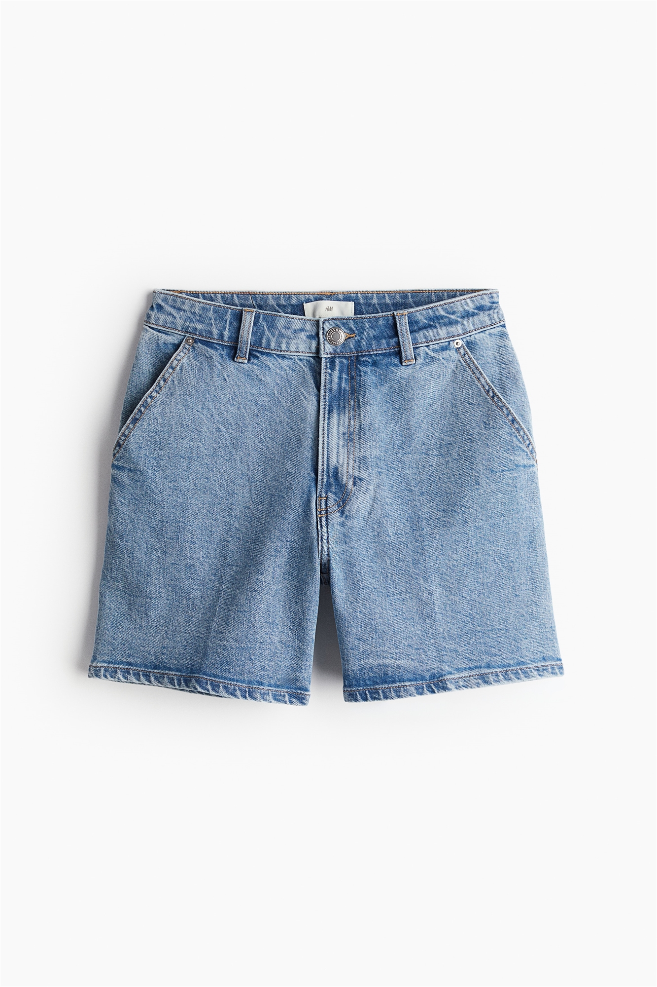 Шорты из хлопкового денима с легким стретчем для комфорта. Высокая талия, застежка на молнию и пуговицу, диагональные боковые карманы и накладные задние карманы.