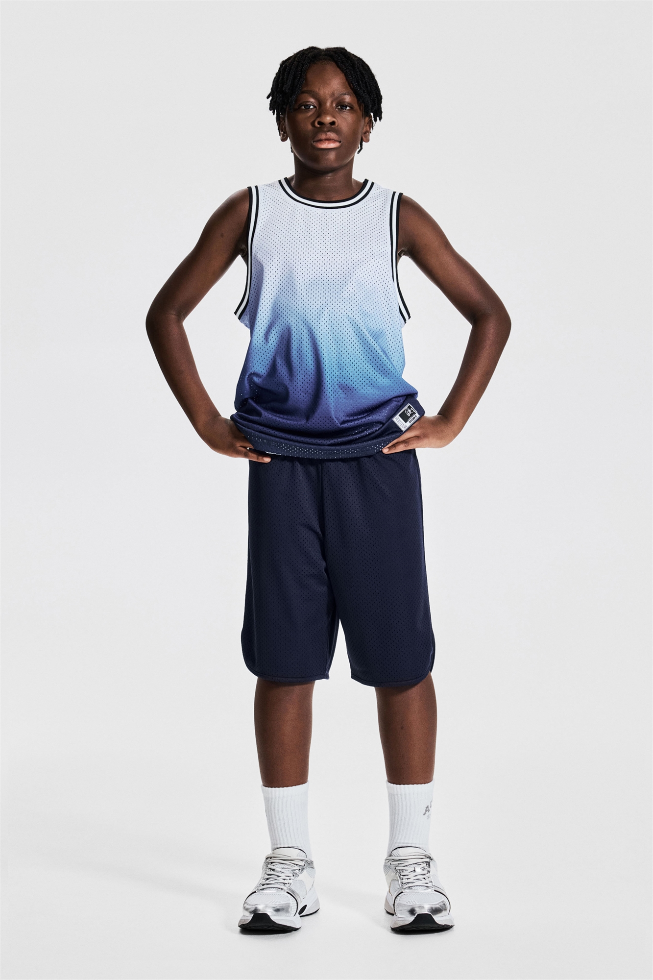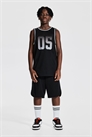 Баскетбольный комплект из жилета и шорт из функциональной сетчатой ткани DryMove™, которая помогает отводить влагу от кожи, обеспечивая комфортную сухость во время движения. Жилет с принтом спереди и контрастной цветной отделкой в рубчик по вырезу горловины и проймам. Шорты длиной до колена с эластичной талией, скрытым шнурком и разрезом по бокам.