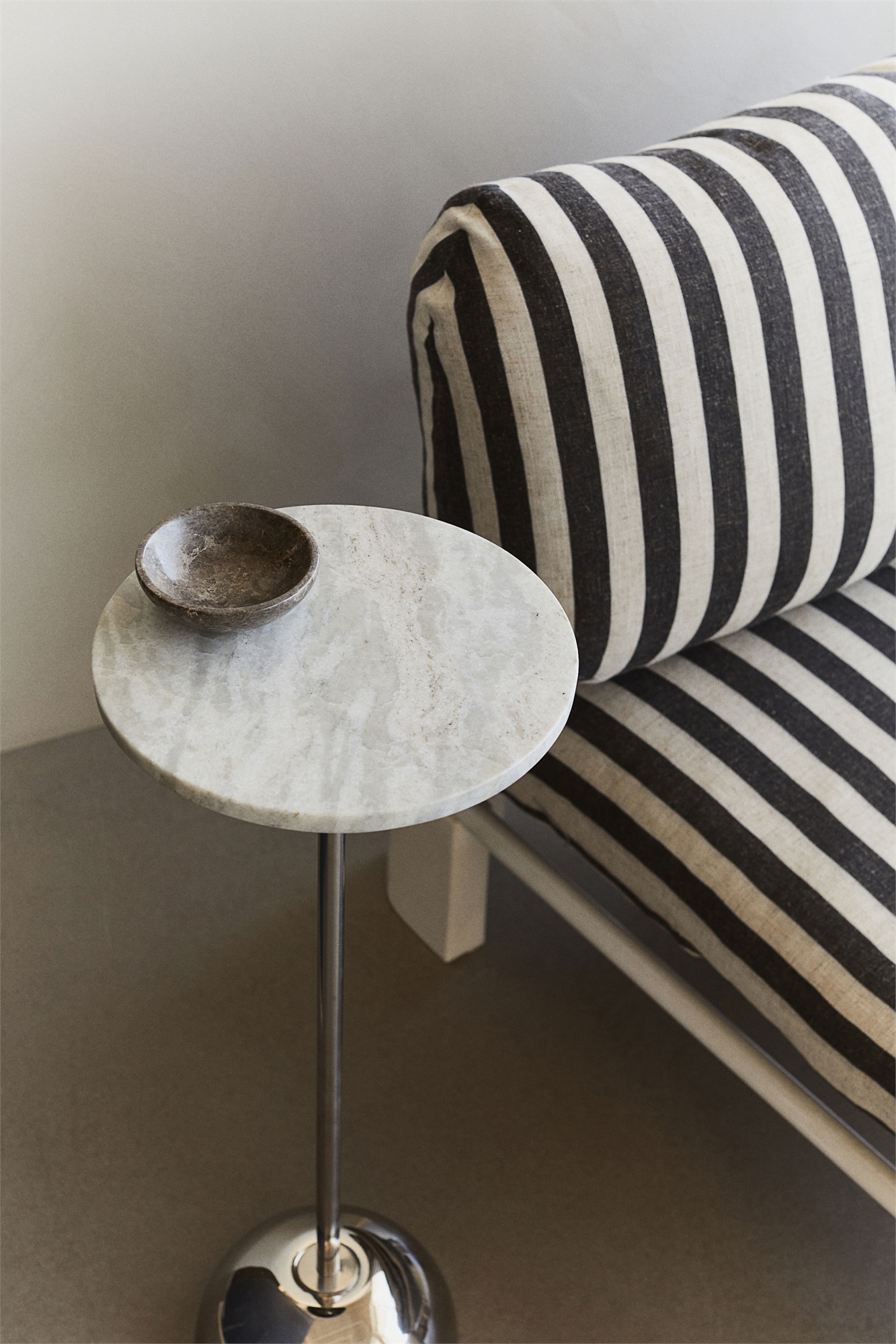 Стильная металлическая тумба с круглой мраморной плитой на вершине. Поставляется в плоской упаковке, готовая к сборке. Диаметр в верхней части 25 см. Высота 60 см.