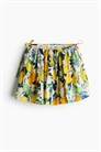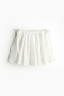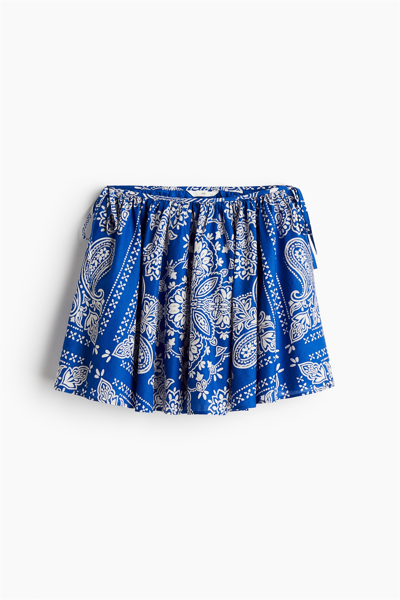 Короткая круглая юбка из воздушного хлопкового полотна с высокой талией, узкими завязками по бокам и потайной застежкой на молнию и крючок. На подкладке.