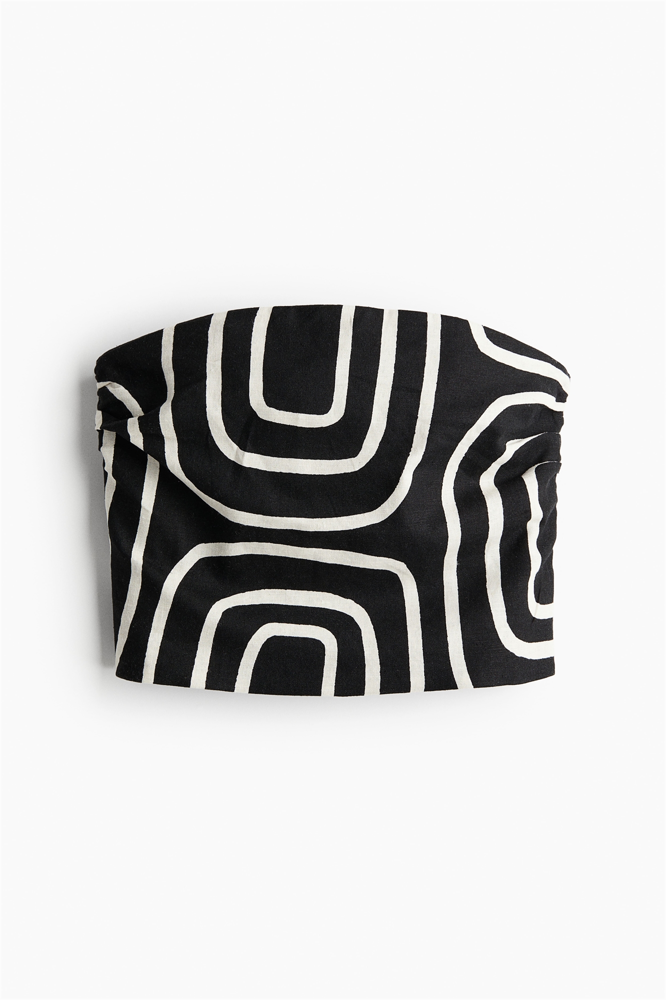 Облегающий топ-бандо из льна и вискозы со складками по бокам. Скрытая силиконовая отделка в верхней части, потайная застежка-молния с одной стороны и платочная вставка сзади. На подкладке.