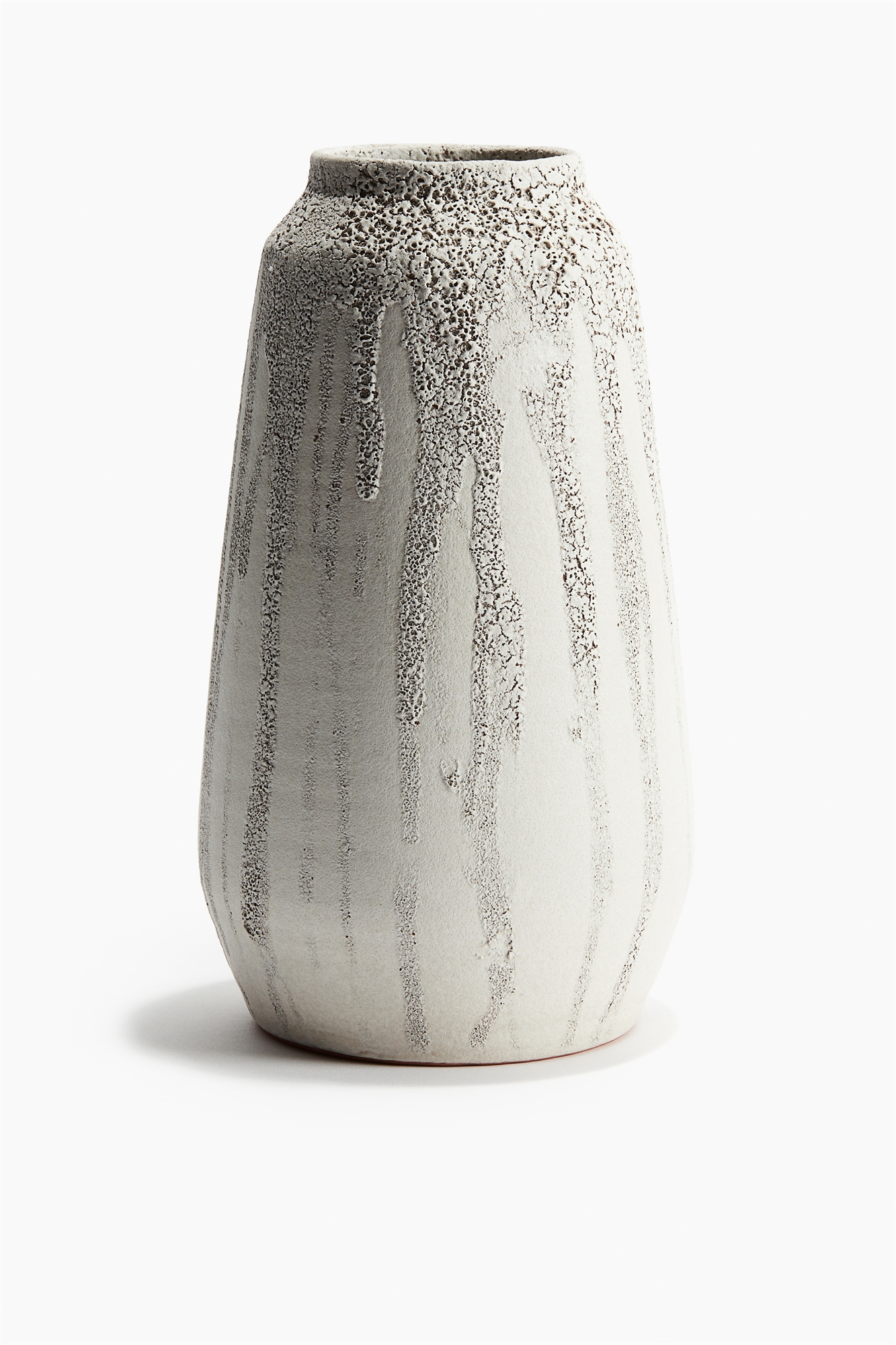 Высокая ваза из глазурованной терракоты с удивительной фактурой поверхности. Диаметр отверстия 9,7 см. Диаметр в самом широком месте 19 см. Высота 31 см.