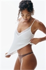Трусы-стринги из микрофибры с заниженной, V-образной талией и ластовицей.