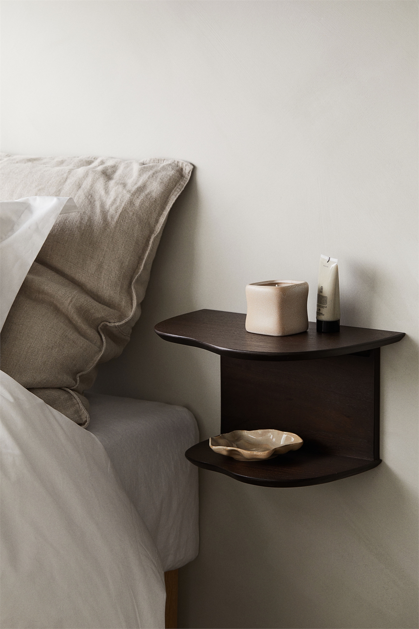 Настенная полка неправильной формы из лакированного МДФ. Полностью собрана. Предварительно просверленные отверстия для легкого подвешивания. Шурупы в комплект не входят. Высота 20 см. Ширина ок. 35 см. Глубина 24 см.