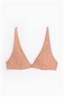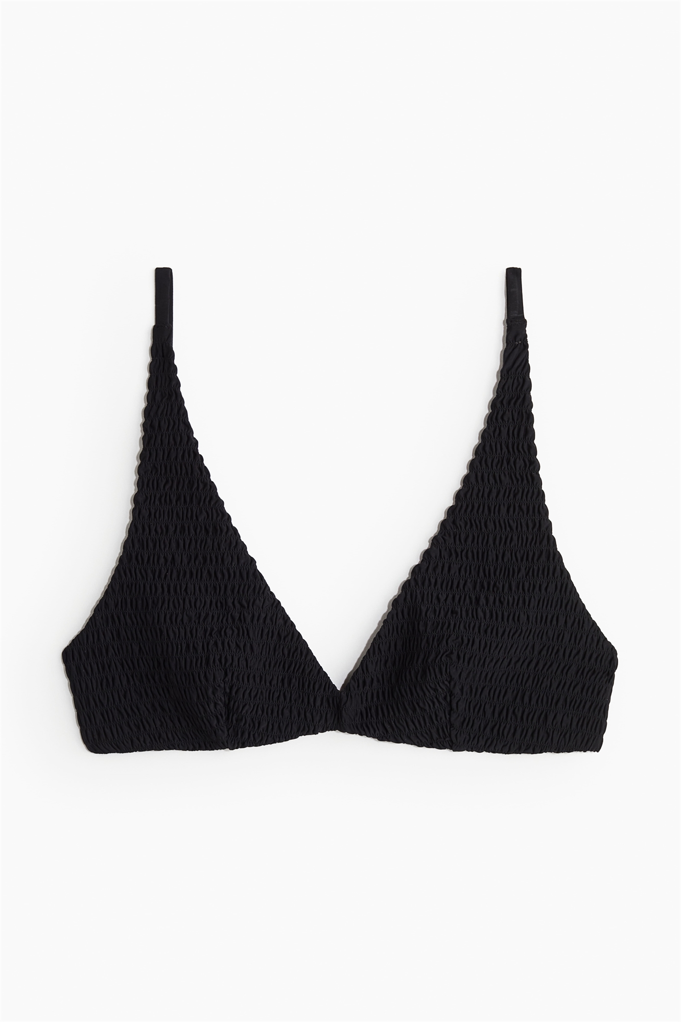 Непромокаемый бикини-треугольник с регулируемыми бретелями и чашечками, которые придают бюсту естественную форму и обеспечивают легкую поддержку. Металлическая застежка сзади.