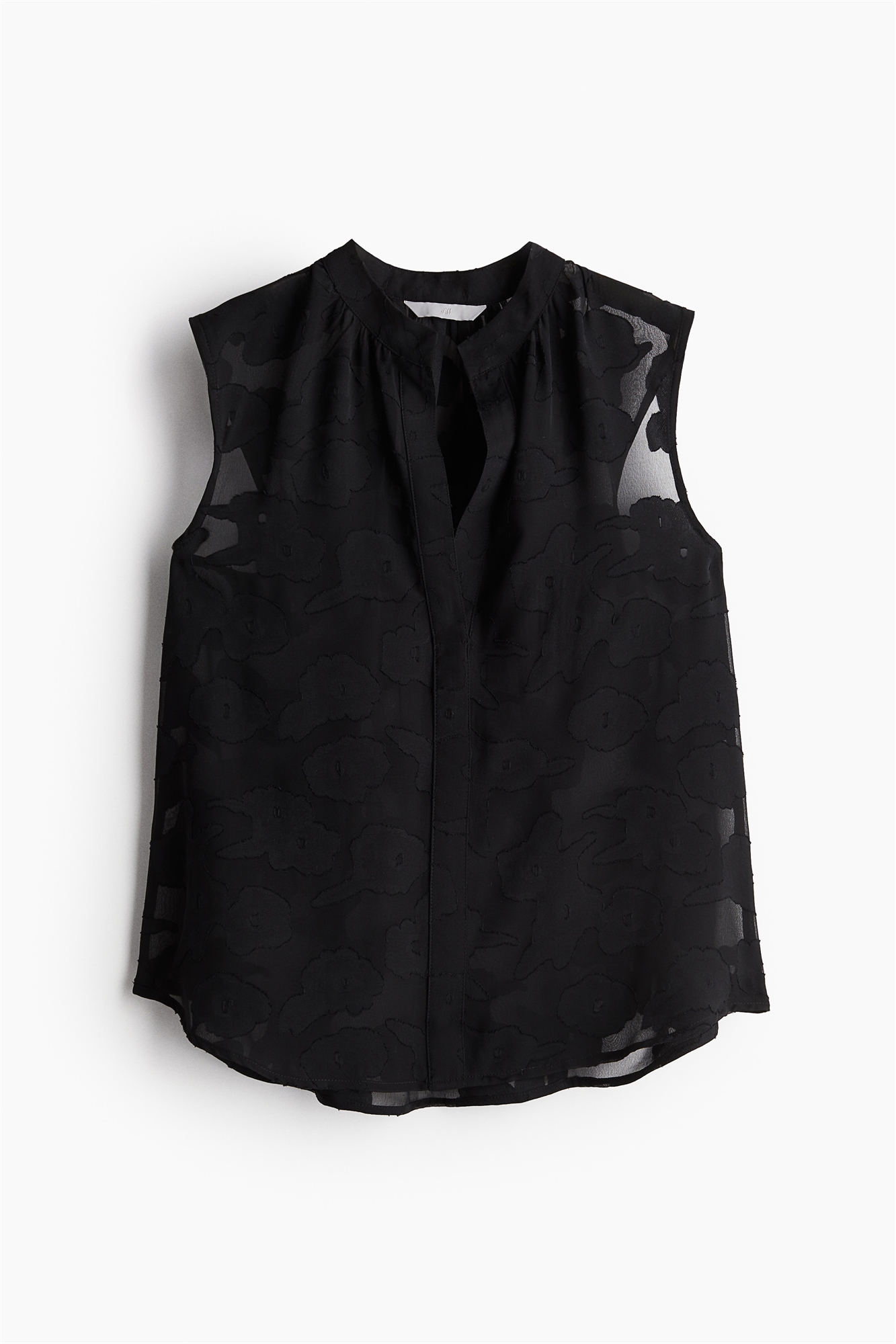 Блузка без рукавов из жаккардового переплетения с воротником-бантом и V-образной проймой спереди. Свободный крой со складками вокруг воротника и мягко закругленным подолом.