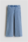 Брюки из плотного джинсового джерси с регулируемой резинкой на талии, фальшивой ширинкой, фальшивыми передними карманами и широкими штанинами.