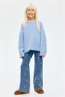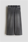 Брюки из плотного джинсового джерси с регулируемой резинкой на талии, фальшивой ширинкой, фальшивыми передними карманами и широкими штанинами.